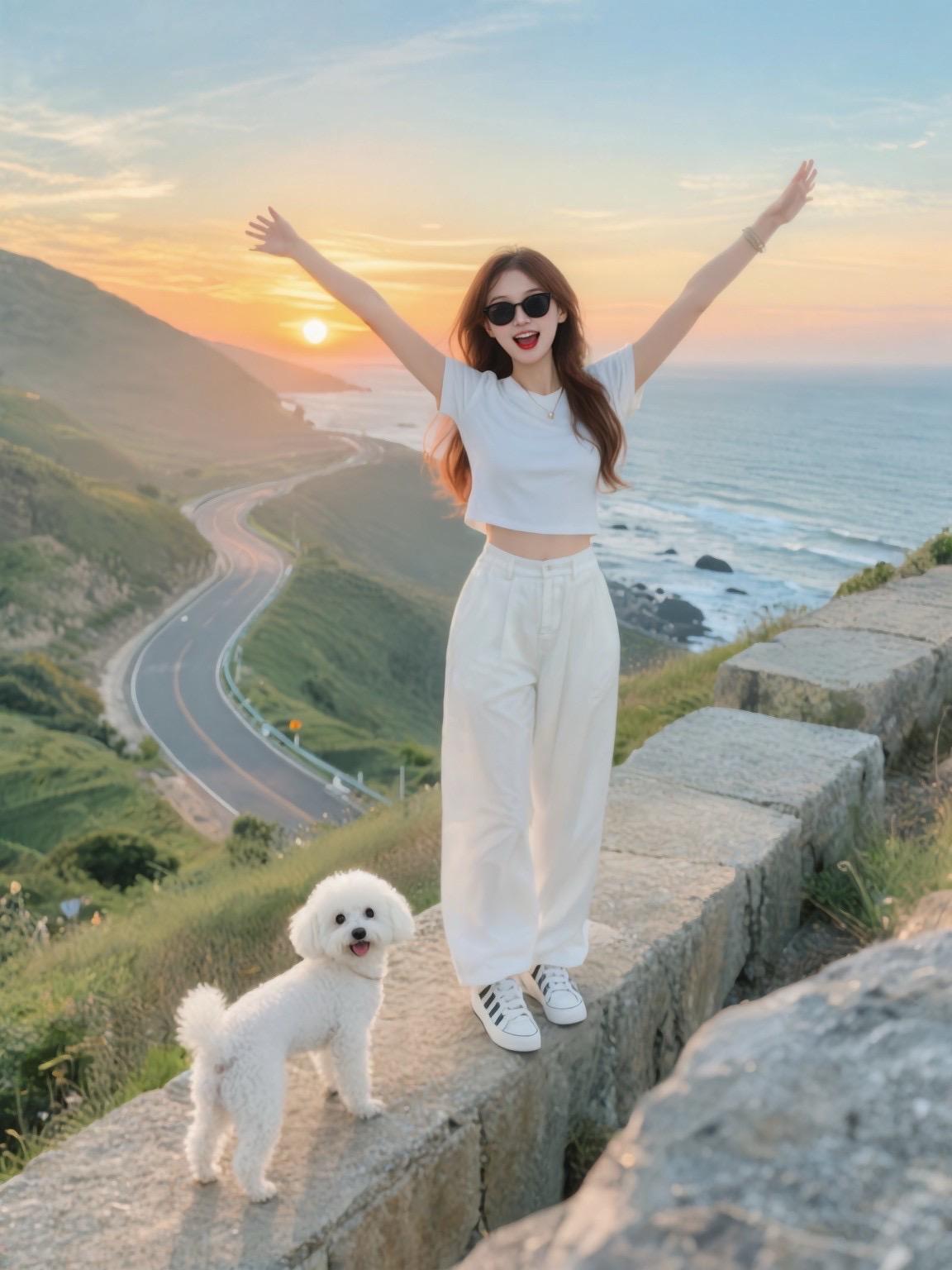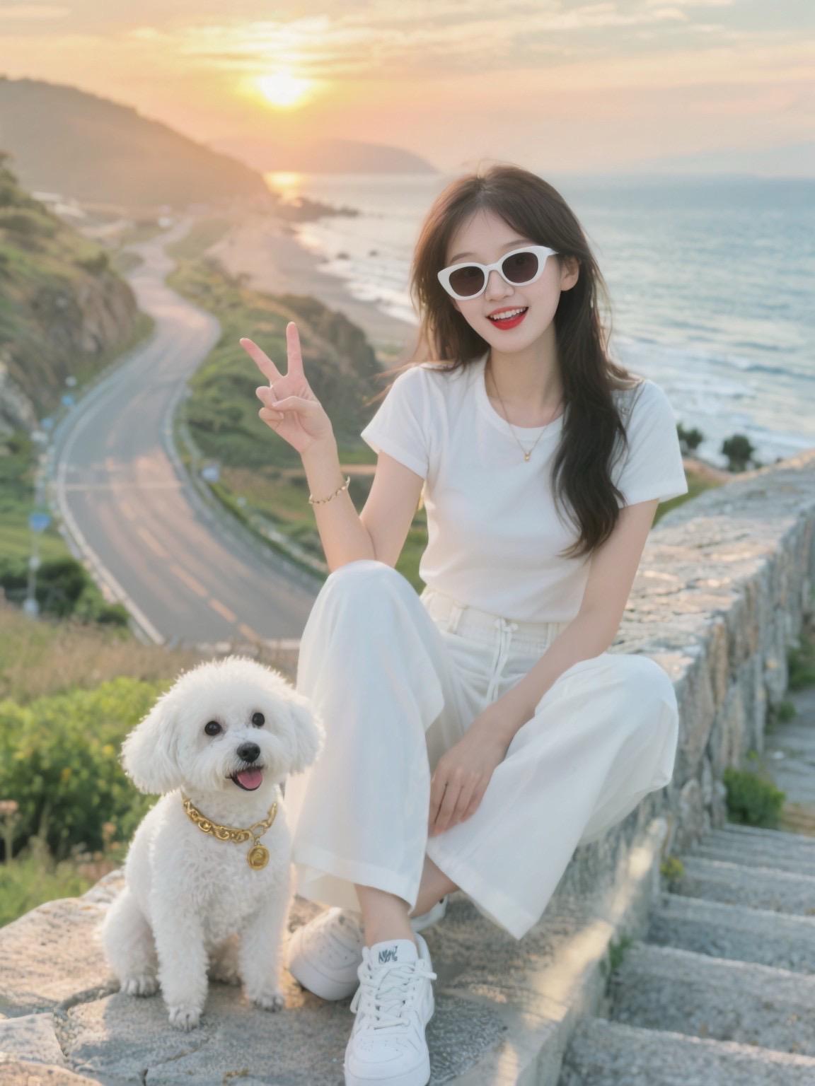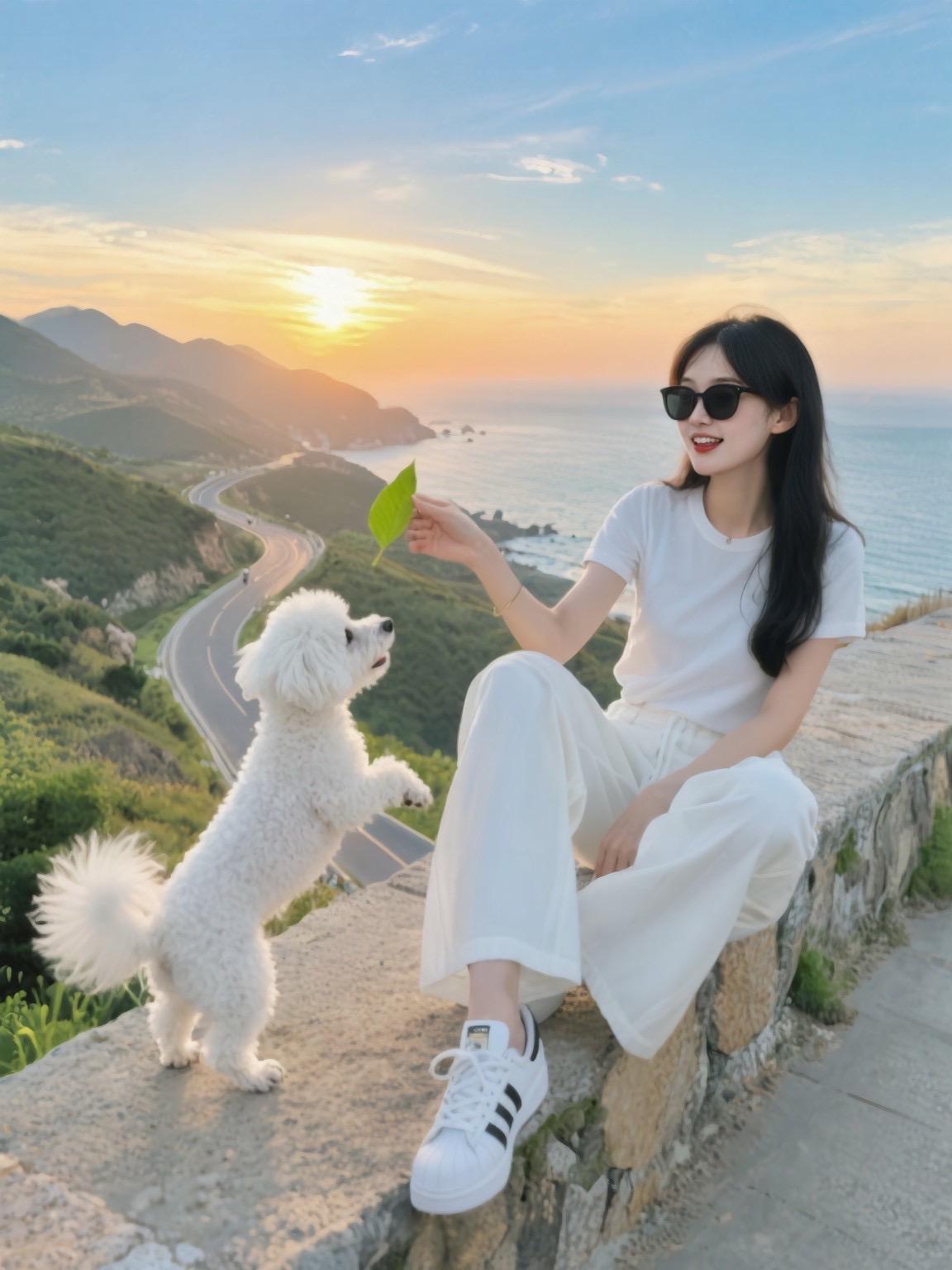 海边拍照带着狗狗去旅行度假穿搭摄影约拍海边拍照