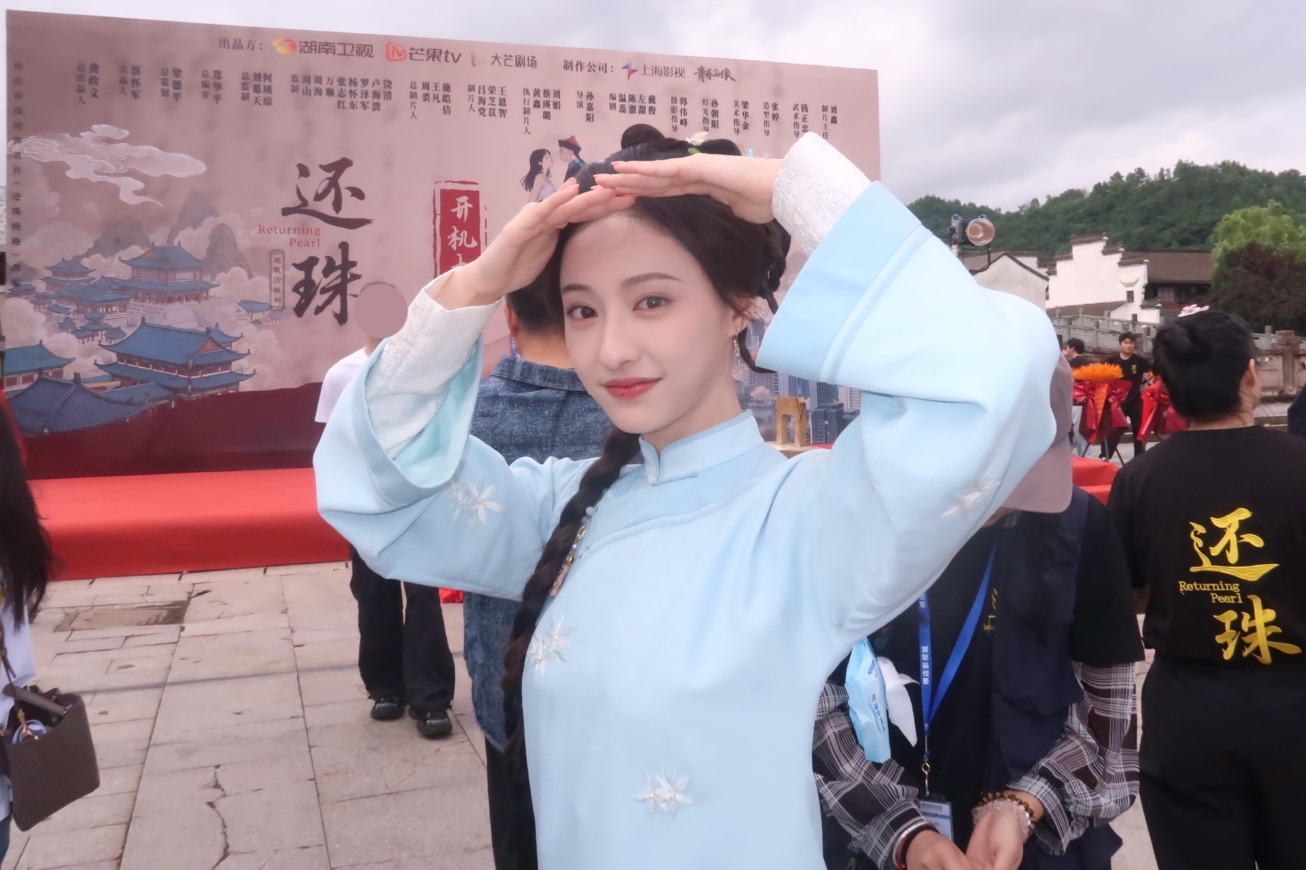 张天爱跟素人合影,胯真的好宽,大宅院似的