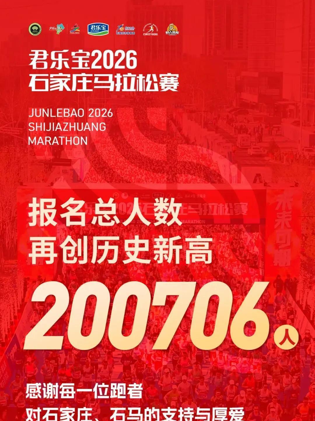 20万人抢3.5万名额!石家庄马拉松中签率仅17.4%,外地人占大半!‌ 这几天持续关注2026年石家庄马拉松赛,让我惊讶的是报名人数首次突破20万大关,创下历史新高!查了查官网,全马和半马总名额仅3.5万个,中签率低至17.4%,堪称“一签难求”‌。从地域分布看,本地跑者占比约30%,河北省内其他城市跑者占40%,外地跑者则高达30%,京津冀地区成为主力军。 ‌为何如此火爆?‌原因已经从昨天的那篇微头条里讲的清清楚楚,既有赛道优势,又有组织管理的科学周密,还有服务保障的贴心细心。昨天也有中签的朋友留言询问酒店价格,这个大家不用担心,赛事承办方早就要求各商家稳定物价、稳定市场。 这场“全民狂欢”背后,是全民健身热潮与优质赛事稀缺的碰撞。石家庄马拉松用实力证明:好赛道+好服务,自然能“跑”出圈!