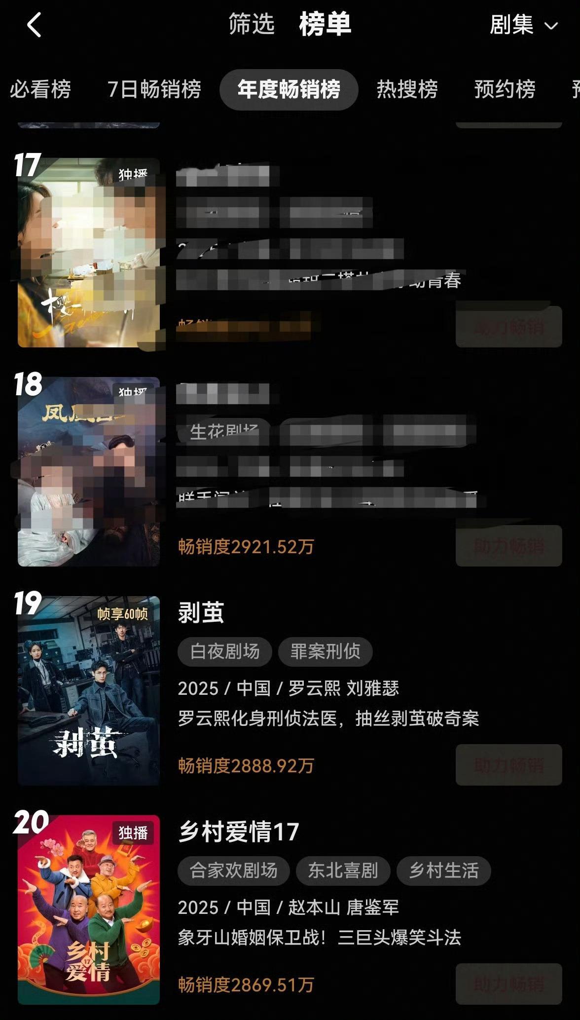 恭喜罗云熙《剥茧》优酷年度畅销榜19,又上升1位,21集无固屏无营销的刑侦剧