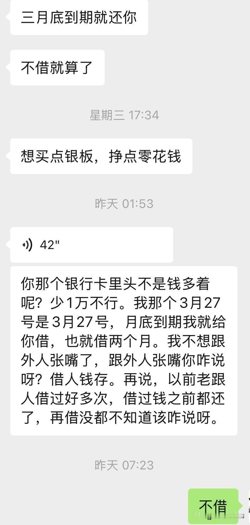 拒绝了妈妈找我借一万块钱 心情乱七八糟的。 我刚刚开始正式工作三个月,月薪2w+,但是从大二开始就在兼职赚钱,到现在研三有大概十几万的存款。这周妈妈国内深夜突然给我写:能不能借她一万块钱,没有任何原因的解释,就问我借不借(虽然说了两个月之后还)这笔钱确实对我而言并不那么急用,也不会让我一夜返贫,却让心里非常不是滋味。因为我的脑海里闪过一些碎片: 我出国留学时,带着爷爷奶奶给的三万,自己兼职工作赚的五六万和一笔足够我一年开销的奖学金。妈妈从来没有问过我,钱够不够花。我的物欲不高,在波兰留学的这段时间物质过得不算贫穷,但在亲情的爱上却那样贫乏。我准备北外研究生考试的那段时间,我妈妈有个晚上突然说,你别考研究生了,考教师资格证早点赚钱吧。嗯,还好我没听过她的任何一句要求和建议;我曾经因为攒钱有自己积蓄的喜悦忍不住和她半是炫耀半是分享地说过自己存下了多少钱,但在她主动打探我的存款是不是到XX万是还是会觉得刺痛。 前一阵子和男朋友聊天,问他童年时收到过最好的生日礼物是什么?他说是妈妈亲手做的冰淇淋蛋糕,在童年的记忆都神化下,那个蛋糕成为了无可替代的珍宝。他又问我收到最好的礼物是什么,我说是一个被退掉的芭比娃娃。它是一个礼盒,里面有一个漂亮的芭比娃娃和她的很多服装,还有做首饰的碎珍珠,可以自己DIY,是爷爷奶奶给我挑选的。但这个礼盒刚一出现在我的家里,就被妈妈拿去退掉了,我甚至没来得及打开。我记得我在生日的那一天一直尖叫、大哭,恳求留下那个娃娃,我不会把珠子洒的到处都是,但是还是无力改变任何。她作为补偿,买了两个布娃娃,我一直讨厌这两个布娃娃,觉得它们臃肿、丑陋,在我过得不痛快时它们承担了我的许多怒火。所以对我而言,那个没有得到的带珍珠饰品的芭比娃娃就是最好的礼物。我现在偶尔会路过商店的橱窗,已经可以买下自己喜欢的任何一个芭比娃娃,但是却不会再为之驻足。 昨天是男朋友在波兰的最后一天,他六十多岁的妈妈坚持要开六个小时的车从家里赶到我的城市为了把自己织的毛衣带给儿子,最后在我男朋友的百般劝说下改成了拖人带来。晚上男朋友穿着他妈妈新做的毛衣在电话里一口一个bajer称赞不停,我想了个钱存在国外银行卡的借口拒绝了借钱给妈妈。