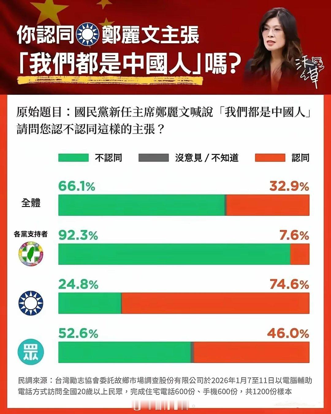 把台湾人全部定性为同胞是战略错误。超过六成台湾人自己都不承认是中国人,我们还自作多情指着它们鼻子告诉它们,不,你们是中国人!