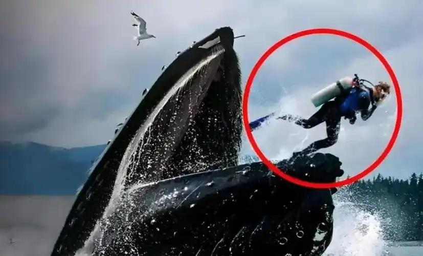 2021年,美国潜水员在海底捕捉龙虾,却被15米长的坐头鲸整个吞下,就在这危急时
