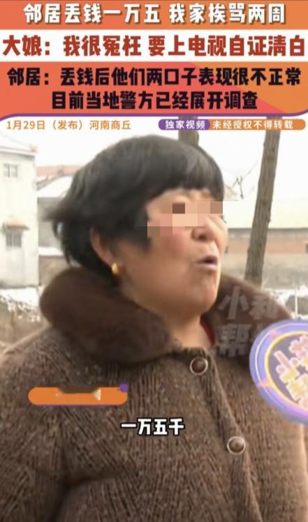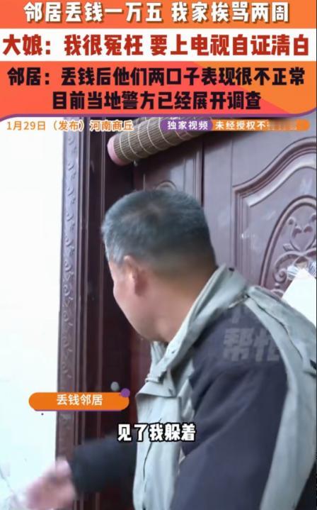 现时版,疑人偷斧?1月29日,河南商丘,大娘的邻居家丢了15000块钱,怀疑是大娘家偷的,一直骂了她两个星期,大娘觉得冤枉,指着邻居说:你冤枉我,骂我,咱俩不能算完。邻居跳脚回道:我奉陪到底!明明我钱藏的地方,连儿女都不知道,可自从钱丢了,你两口子见我都躲着走。   最近这段时间河南商丘这位年过六旬的大娘已经有半个月没睡过一个安稳觉。她和老伴儿都是本本分分的农民,一辈子没跟人红过脸,平日里谁家有个大事小情都愿意搭把手,在村里口碑一直不错。可就在邻居家丢了 15000 块钱之后,两人成了全村人眼里的 “嫌疑人”,这顶帽子一扣就是整整两周。   邻居家的钱是准备给儿子娶媳妇用的彩礼钱,特意藏在一个连自家儿女都不知道的隐秘角落,就怕年轻人乱花。发现钱没了的当天,邻居第一时间就把矛头对准了大娘家。   原因很简单,大娘平时爱串个门,偶尔会帮着邻居收拾家务,是少数几个能自由进出邻居家的外人。接下来的两周,邻居只要见着大娘两口子就当众辱骂,话里话外都在暗示是他们偷了钱,从村口骂到巷尾,连赶集路上都不放过。   大娘的老伴儿性格内向木讷,遇上这种事只会低着头躲着走,不敢跟人争执。没想到这一躲,反而让邻居更加确信自己的猜测。   邻居逢人就说,钱丢了之后大娘家两口子做贼心虚,见了自己就躲,这不是偷了钱是什么。这些话像针一样扎在大娘心上,她一辈子看重名声,不能就这么被人泼脏水。   后来她主动找到当地民生调解栏目求助,想要当着镜头自证清白,哪怕要面对全村人的目光,也要把这件事说清楚。   调解现场,大娘对着镜头反复强调自己没偷钱,说自己和老伴儿一辈子老实,从没干过亏心事,就连捡个五毛钱都要等失主回来。   邻居则坚持自己的怀疑,说那笔钱是家里的救命钱,藏得那么隐蔽,除了经常来家里串门的大娘,没人能发现。双方各执一词,情绪越来越激动,最后闹到报警,当地警方已经介入调查,暂时还没有明确结论。   这件事传到网上后,网友们也炸开了锅。   有人说,没有证据就不能随便怀疑别人,邻里之间的信任一旦没了,就再也回不来了。   也有人说,大娘两口子躲着走的举动确实容易让人误会,遇到这种事应该主动说清楚,而不是回避。   还有人提醒大家,大额现金最好存进银行,不要随便藏在家里,避免引来不必要的麻烦。   从目前的进展来看,警方还在对现场进行勘查,暂时没有锁定嫌疑人。大娘家依旧承受着周围人的指指点点,老伴儿出门干活都要绕开邻居家的方向,生怕再引发口角。邻居则表示,只要一天没找到钱,就不会停止质疑,哪怕最后证明是自己错了,也觉得自己的怀疑合情合理。   这件事也给所有人提了个醒。邻里相处,信任是基础,没有真凭实据就随意猜忌、公开辱骂,不仅会伤害别人的感情,也可能让自己陷入法律纠纷。遇到财物丢失,第一时间应该选择报警,让警方来调查处理,而不是靠主观臆断去指责他人。   同时,每个人在遇到误会时,也应该主动沟通,而不是选择回避,很多矛盾都是因为缺乏沟通才升级的。另外,大额现金尽量不要在家中存放,选择银行存款不仅安全,还能避免类似的猜忌和纠纷。   你怎么看待这件事?如果你是这位大娘,会怎么证明自己的清白?欢迎在评论区留下你的看法。