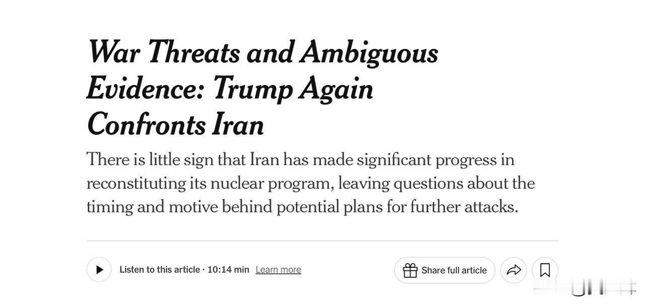 美方情报:暂未发现伊朗研发核武器相关迹象 《纽约时报》援引美情报数据报道,伊朗目前未新建核设施,亦未从去年夏季遭美军空袭损毁的核设施中提取核燃料。 美情报评估,若无伊斯法罕核设施的相关核燃料,伊朗极难制造核武器,暂未发现其将铀浓缩至武器级别的迹象。 美方监测到两处已知未完工核设施有相关活动,该情况此前已通报以色列及国际原子能机构。