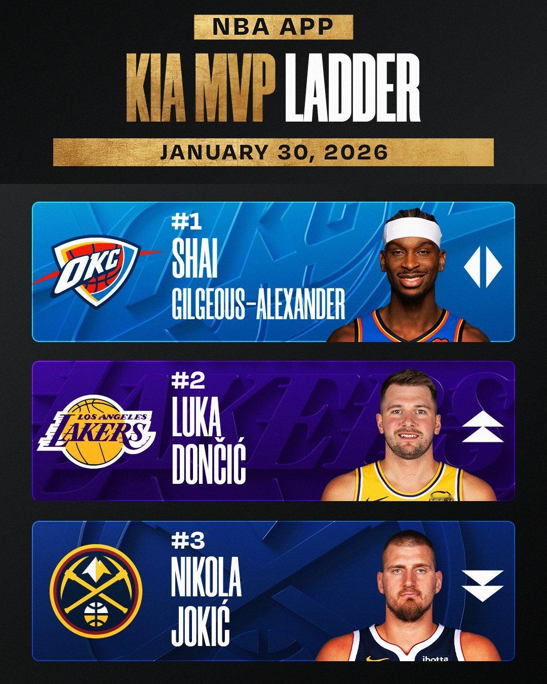 官网更新MVP榜亚历山大继续领跑东契奇超越约基奇升至第二位湖人大胜奇才东契奇湖人