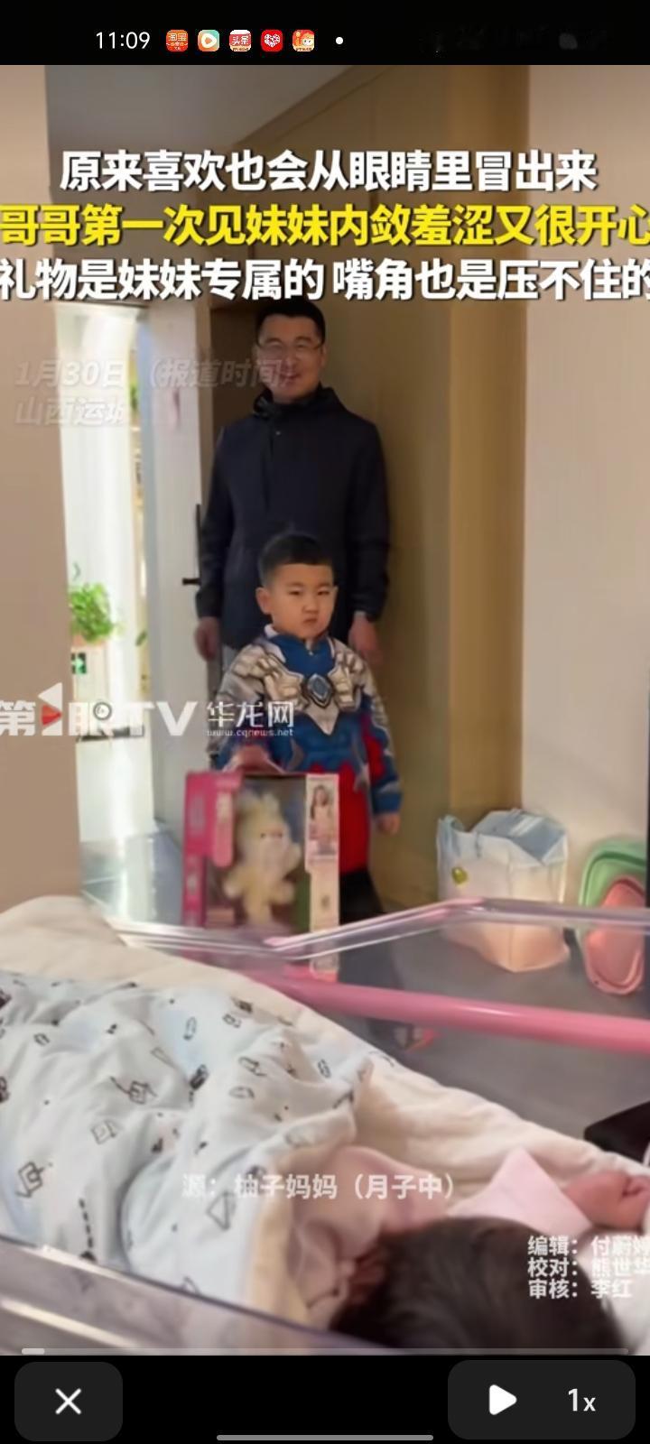 1月26日,山西运城。孩子妈妈生了一个女儿,哥哥第一次见妹妹内敛羞涩又开心,礼物是妹妹专属的,嘴角也是压不住的。 孩子妈妈卫女士表示,这是我们家老大在我怀孕的时候,她就特别期待老二的出生,生出来后他还没来得及看,老二就被抱进新生儿科,好几天没看到妹妹,他也有些失望。他爸爸去幼儿园接他的时候,告诉他“妹妹今天回来了”,然后他特别开心,去给妹妹买礼物了。