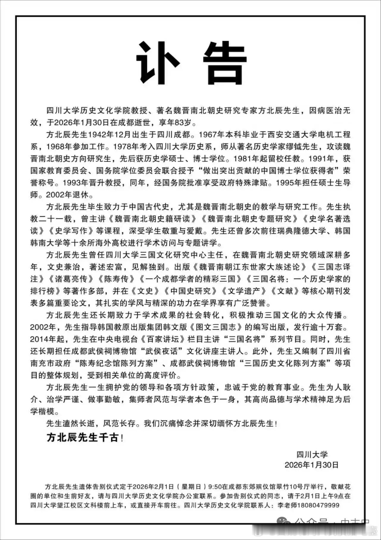 四川大學方北辰(1942-2026)先生逝世,致哀!网页链接