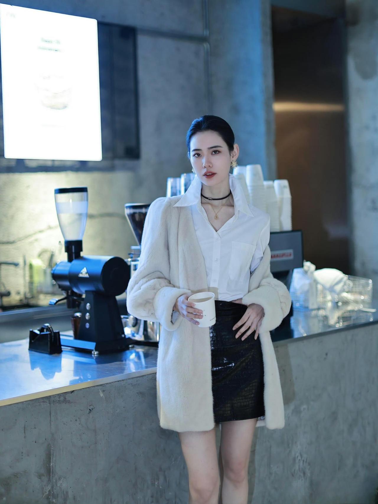 这套穿搭好有“贵气松弛感”!米白毛绒外套+白衬衫+亮面黑短裙的组合,用柔软的毛绒中和了衬衫的干练,亮面裙又增加了精致亮点,裸色高跟鞋还悄悄拉长了腿型,日常约会或轻社交都很合适~毛绒外套 秋冬毛绒绒穿搭 毛绒外套搭配