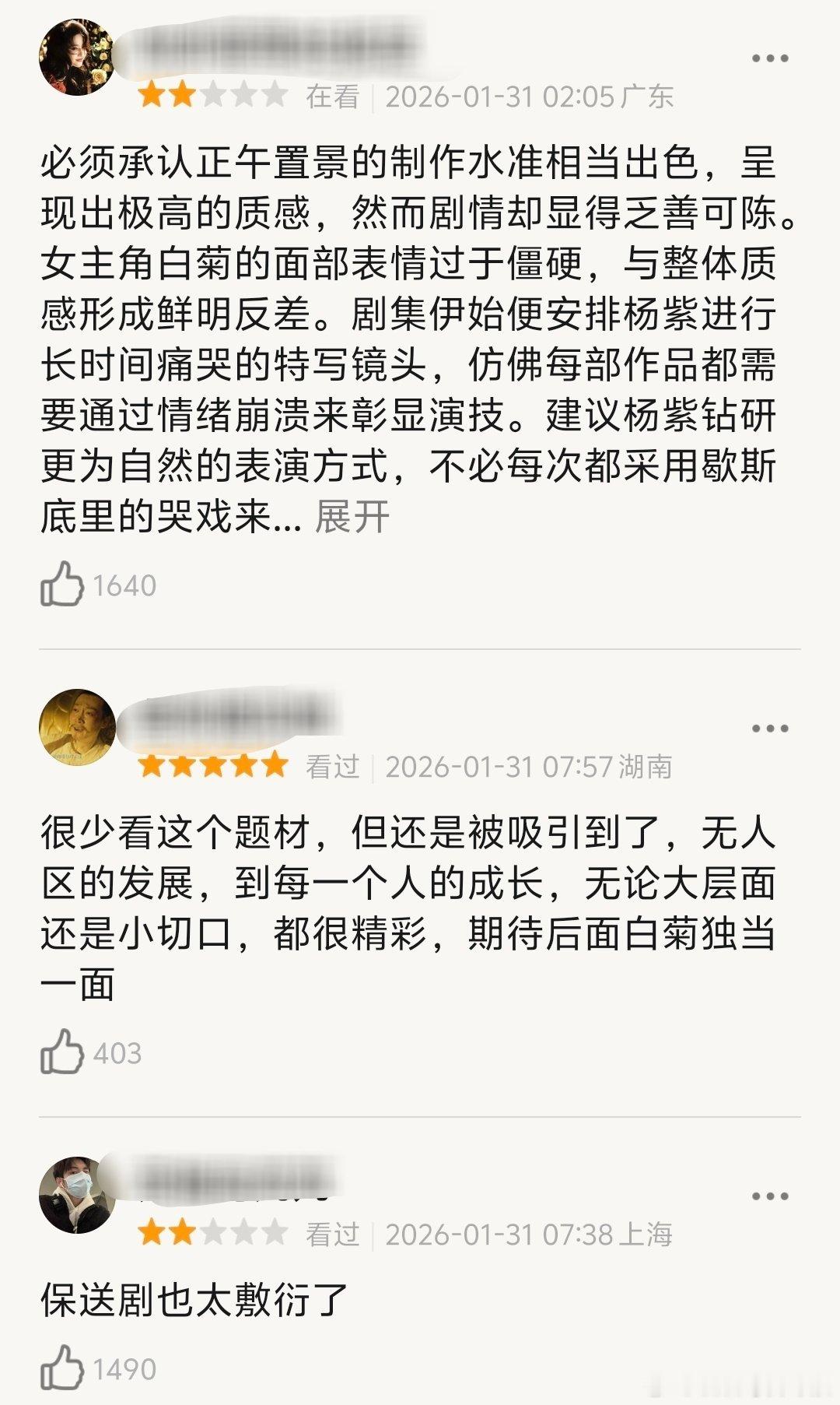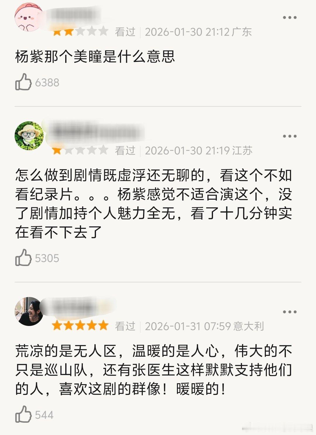 杨紫《生命树》豆瓣短评被修复,目前好评价已经上来了,目前高分评价和低分评价马上要55开了!高分集中在题材好实景绝,低分集中在剧情平和杨紫演技上。