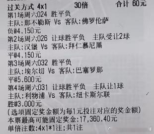 2串:024负 026让平4串:024负 026让平 032平 031让胜成绩串:024(0-2 1-2)031(3-1 4-1)032(1-1 2-2)