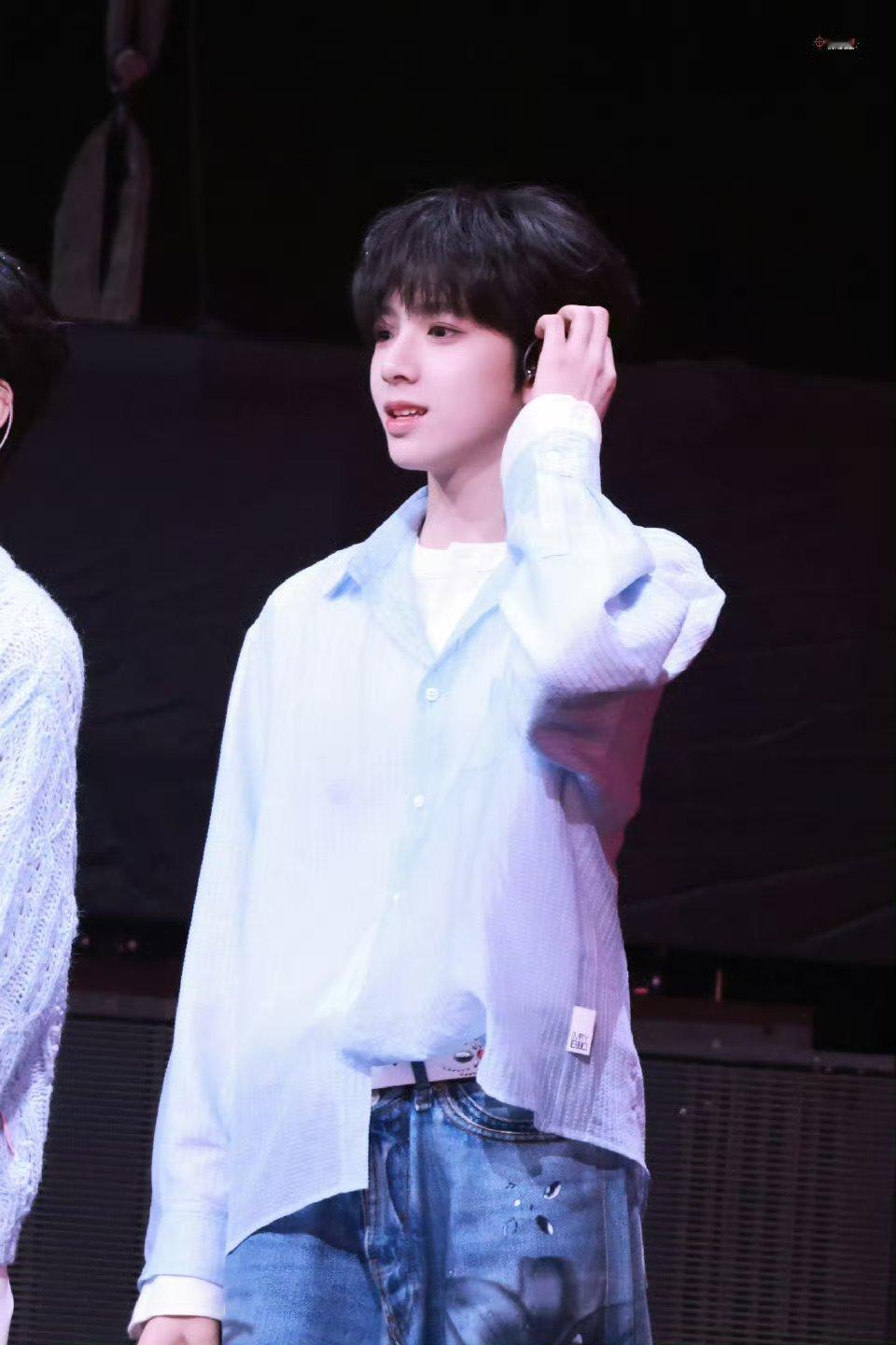 陈浚铭荣耀之战路透🈶蓝衬衫👔造型少年感满满~ 不愧是大门面陈太帅 随随便便就出神图了 期待今天的舞台喽!!