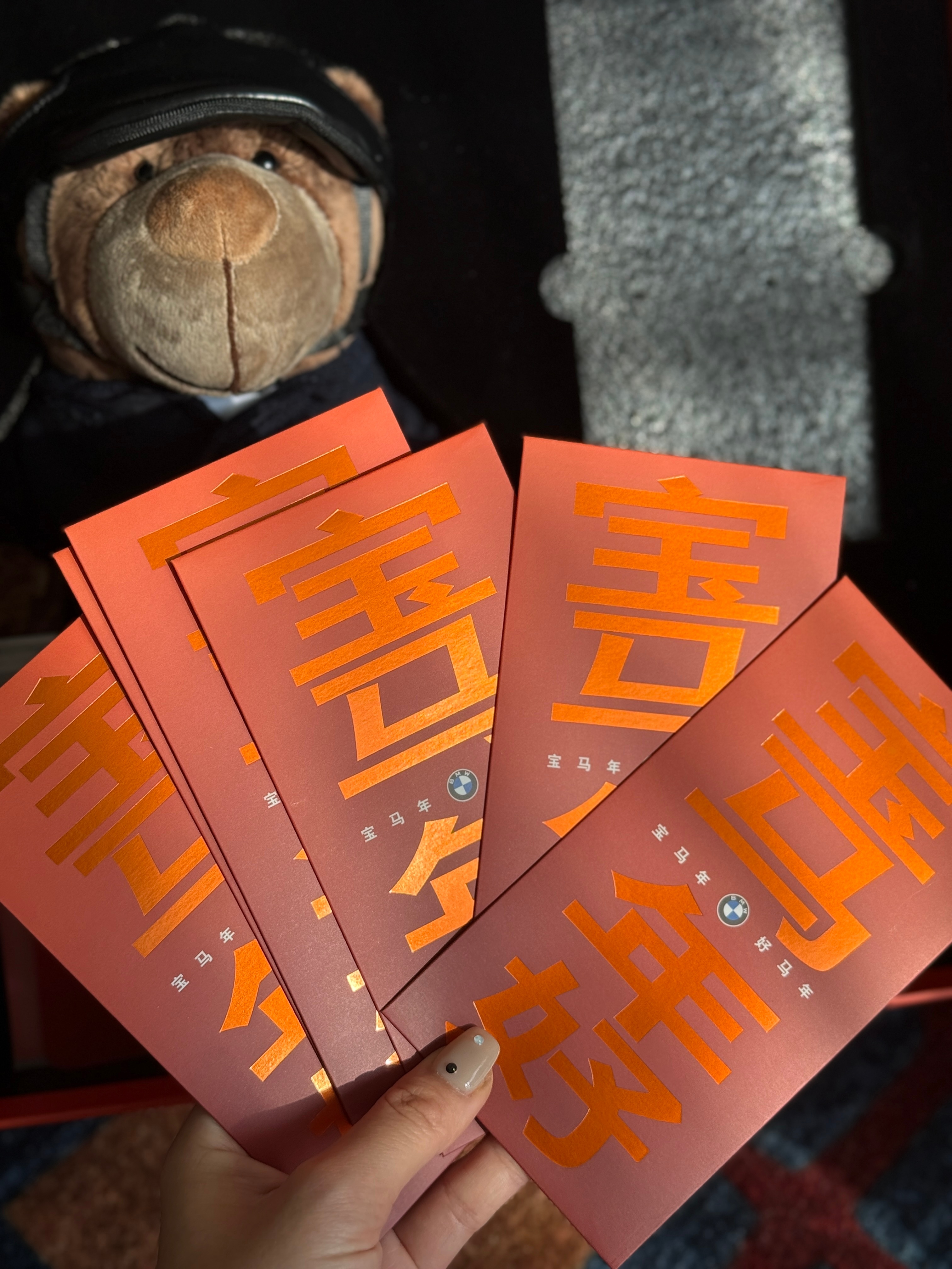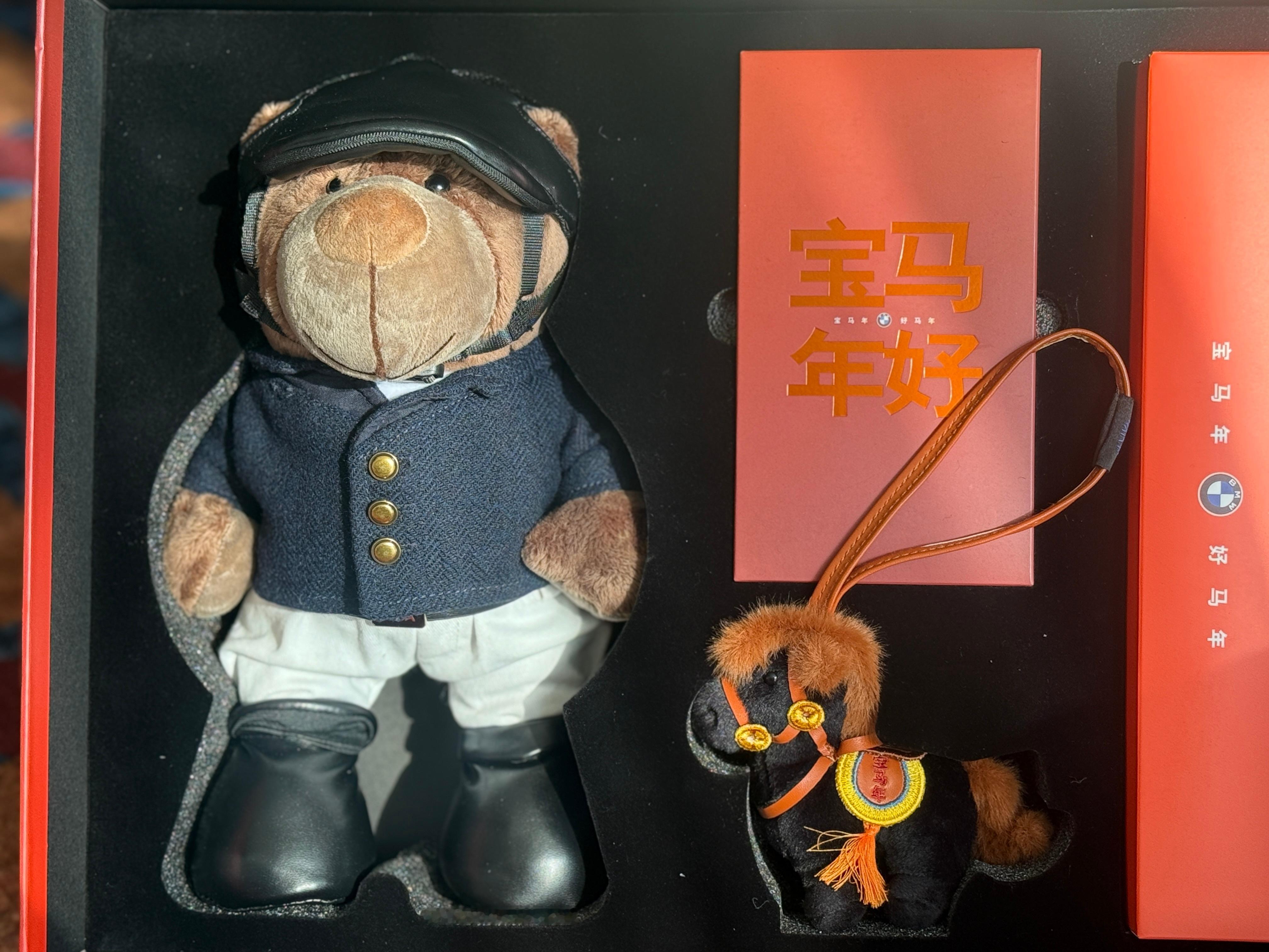 收到了宝马的新年礼盒,里面的小礼物都好有心意!🎁除了春联、红包、车贴,还有一个软乎乎的小马挂饰,以及穿上了定制马术服的Bava小熊!!!
