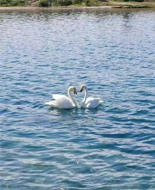 湖面上一对优雅的白天鹅,宁静而美丽。