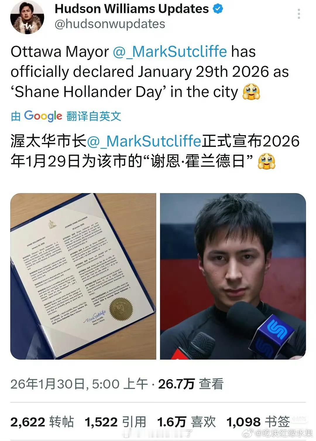渥太华市长居然把《巅峰对决》其中一个主演的生日 命名为该市的xx日