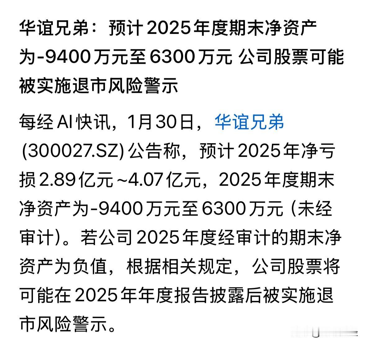 华谊兄弟,这真的好大的坑,作为国内首家上市的专业影视制作公司,这回竞然走到了负资产的地步,走到了退市边缘。 A股市场还是包容性太高了,由着这连续亏损长达8年的公司自生自灭。 目前华谊兄弟仍有61.59亿元的市值,而两兄弟在不断减持下,持股比例仅余8%左右。 当初讲的故事,可是指望着华谊能与好来坞里的顶级制作公司的预期来做比较的。 乐呀财经