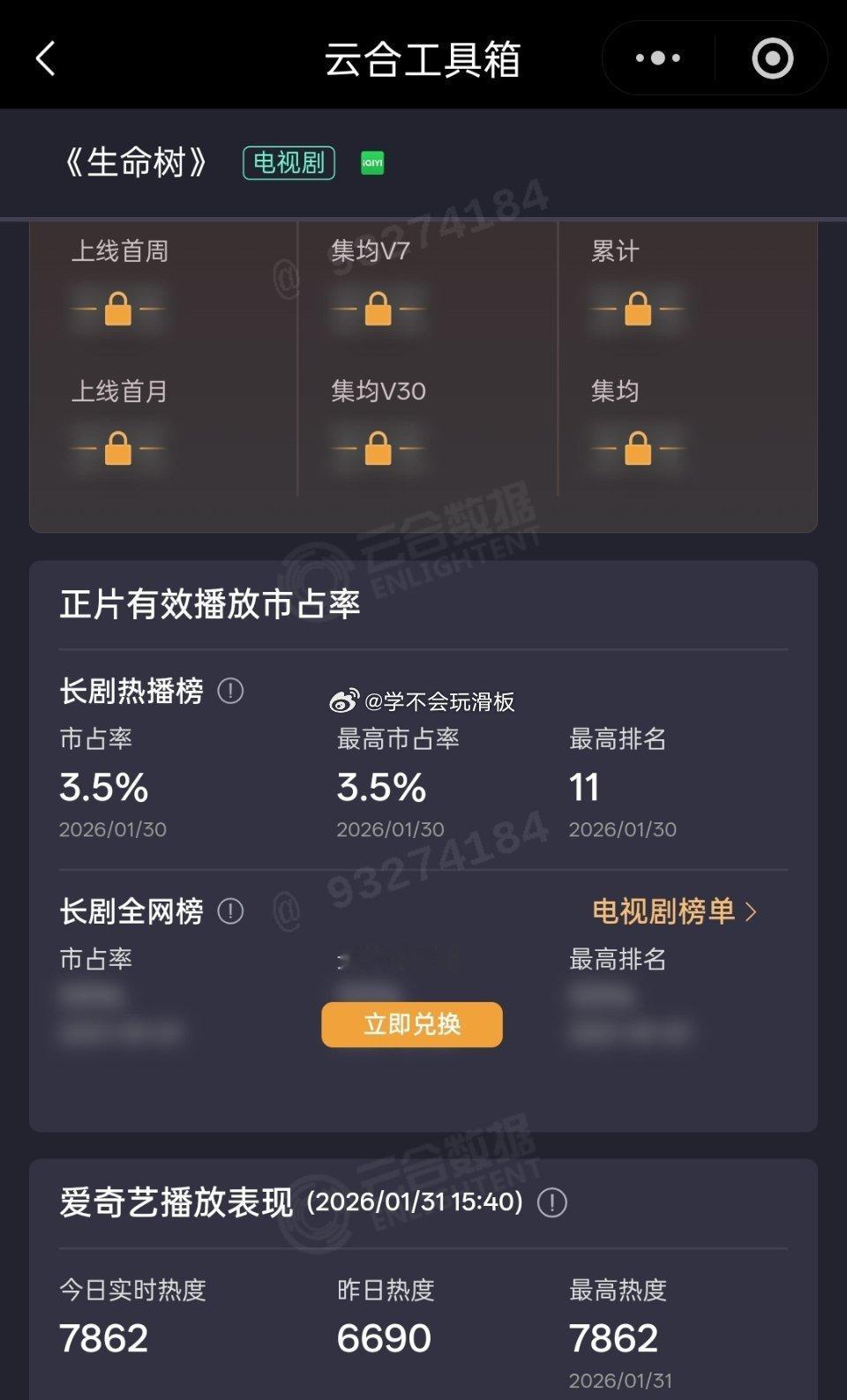 杨紫《生命树》首播,首日云合3.5%次日生命树热度不错,看后续了。