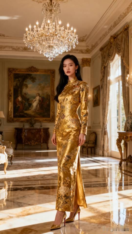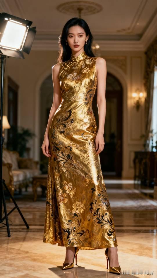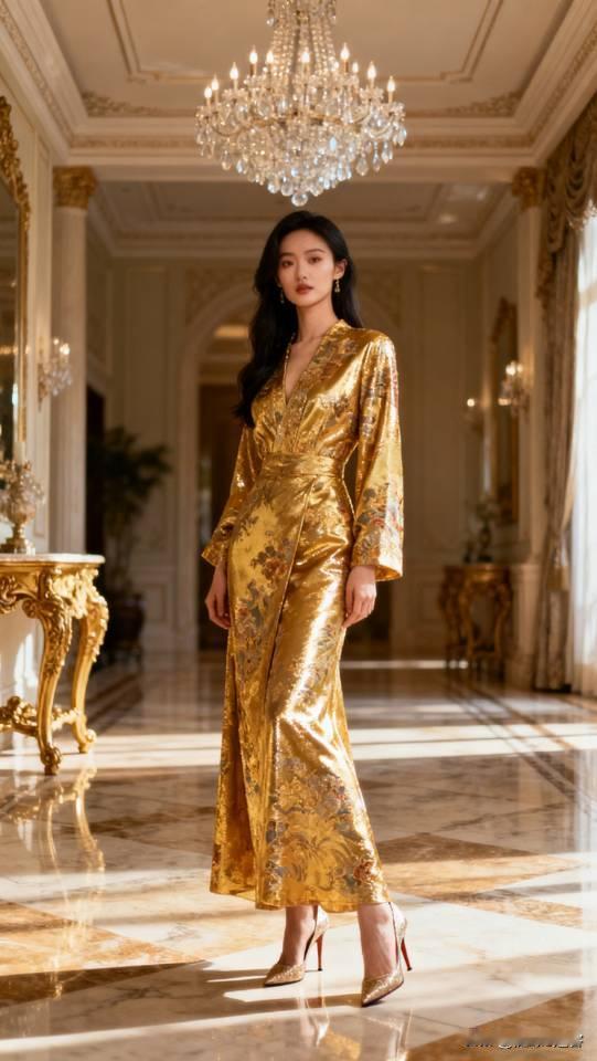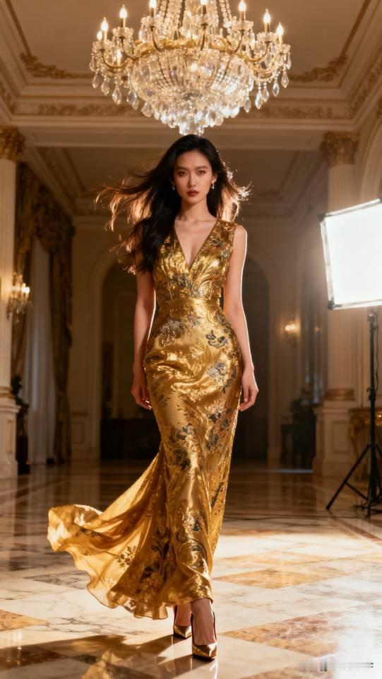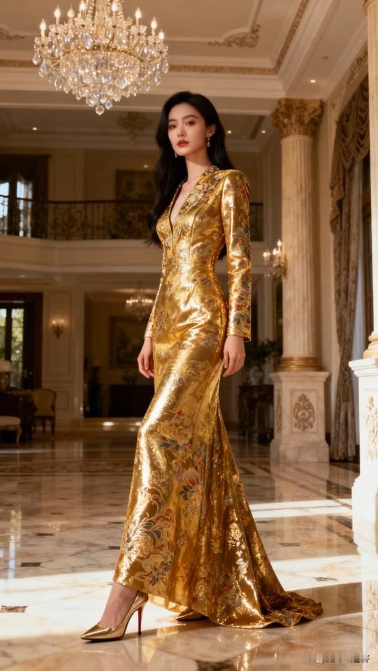 气质美女模特展示金色系列礼服长裙。晚礼服 美女壁纸