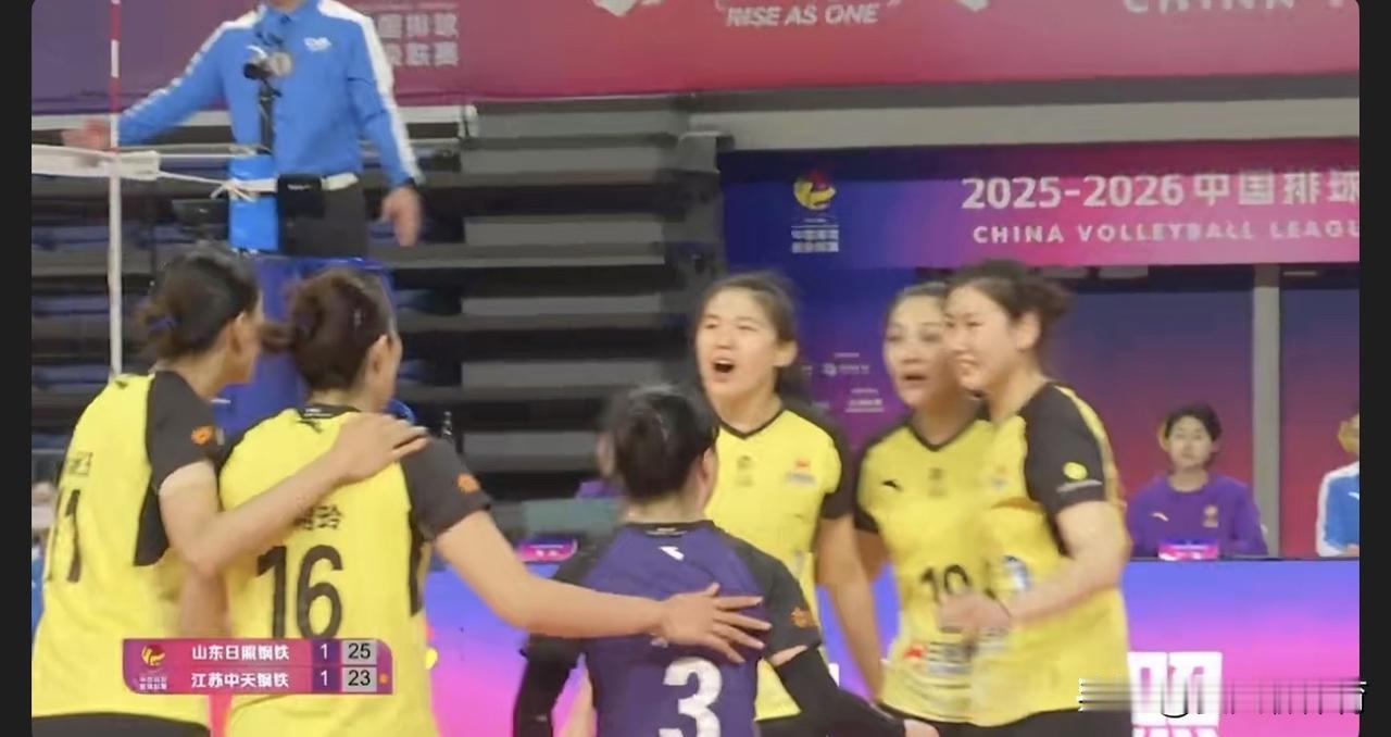 一会儿没看比赛山东女排竟然大比分2-1领先江苏了!今天山东启用了李晨萱跟郭湘玲的主攻线,下手很果断,就是一传不太稳,第三局山东18-10领先,局末江苏一波发球轮追到23-23平,人家山东女排多点开花,孙杰带着小将们打得非常嗨,江苏就靠吴梦洁这一点攻,怪不得周页彤去不了全运会,跟龚翔宇差得可不是一星半点,龚翔宇赶紧回来吧!