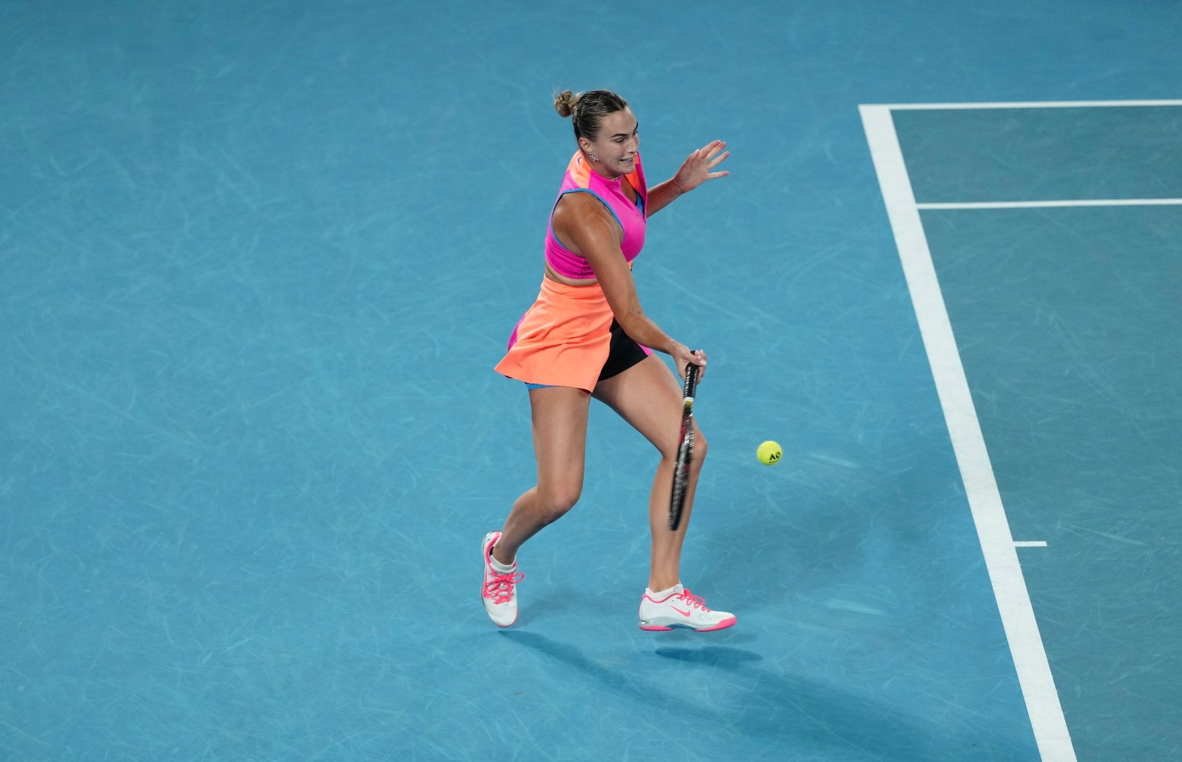 萨巴伦卡vs莱巴金娜 女单决赛,莱巴金娜首盘6-4萨巴伦卡。