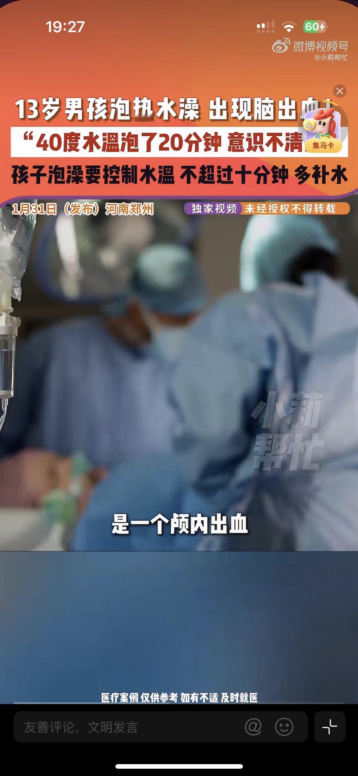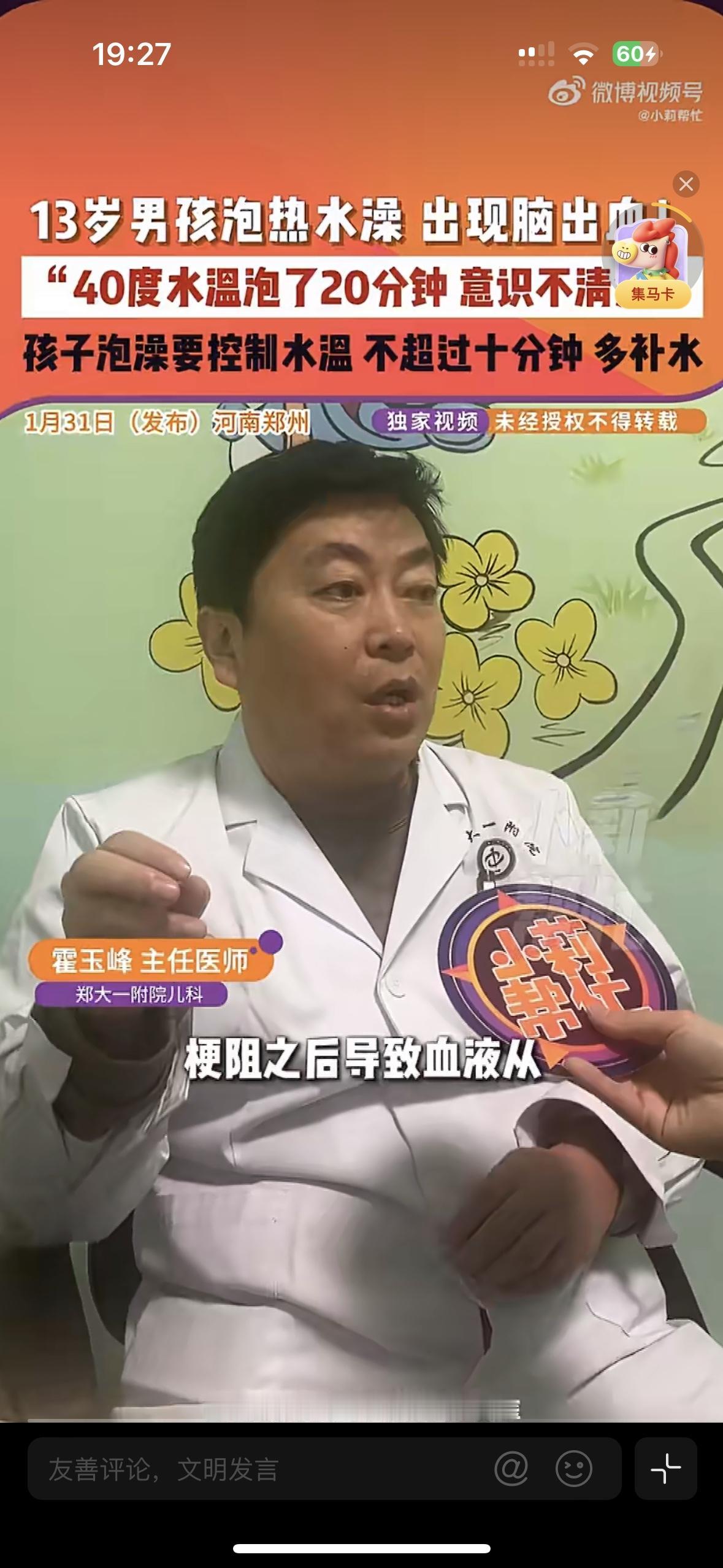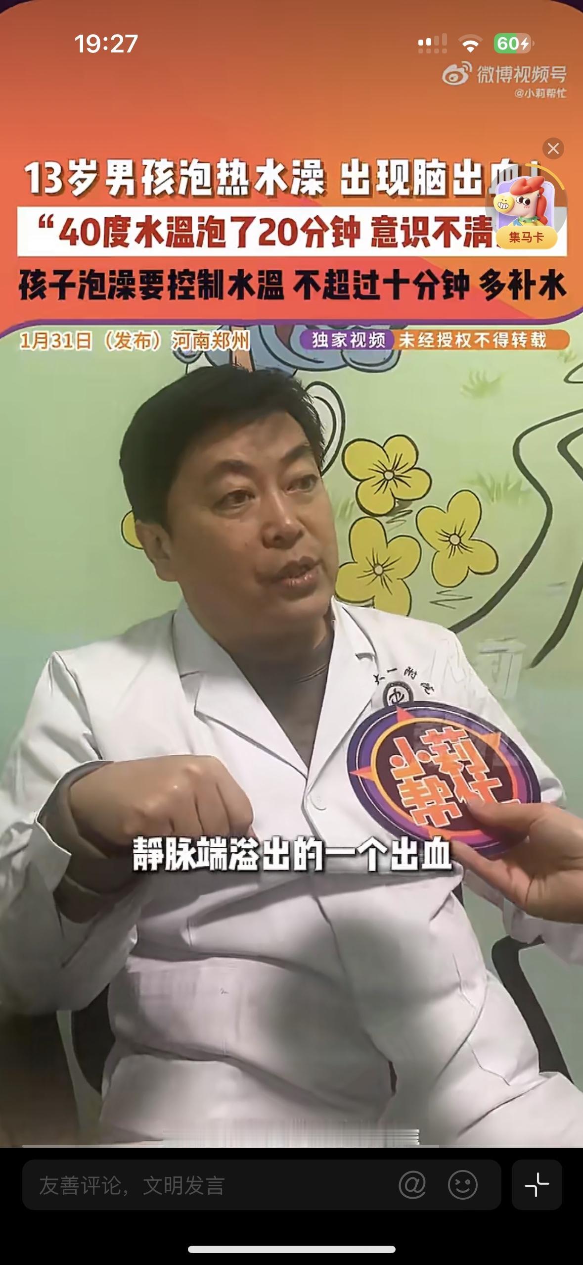 看的让人头皮发麻!13岁男孩泡个澡引发了脑出血,这个细节,家长们可别在忽略了 河南郑州这个新闻真让人太吃惊了,一个13岁的男孩只是用40度的水泡了20分钟的澡,就突然意识不清被紧急送医,检查结果居然是颅内出血! 医生解释,孩子的血管还没发育成熟,长时间泡在热水里会让体表血管急剧扩张,大脑供血骤减,静脉压力飙升,最终导致血管破裂出血。 千万别觉得水温高一点,泡久一点舒服,医生说孩子泡澡水温要控制在38-39度,时间不能超过10分钟,泡完澡要及时补水,别让一次放松的泡澡,变成一场惊魂的意外!