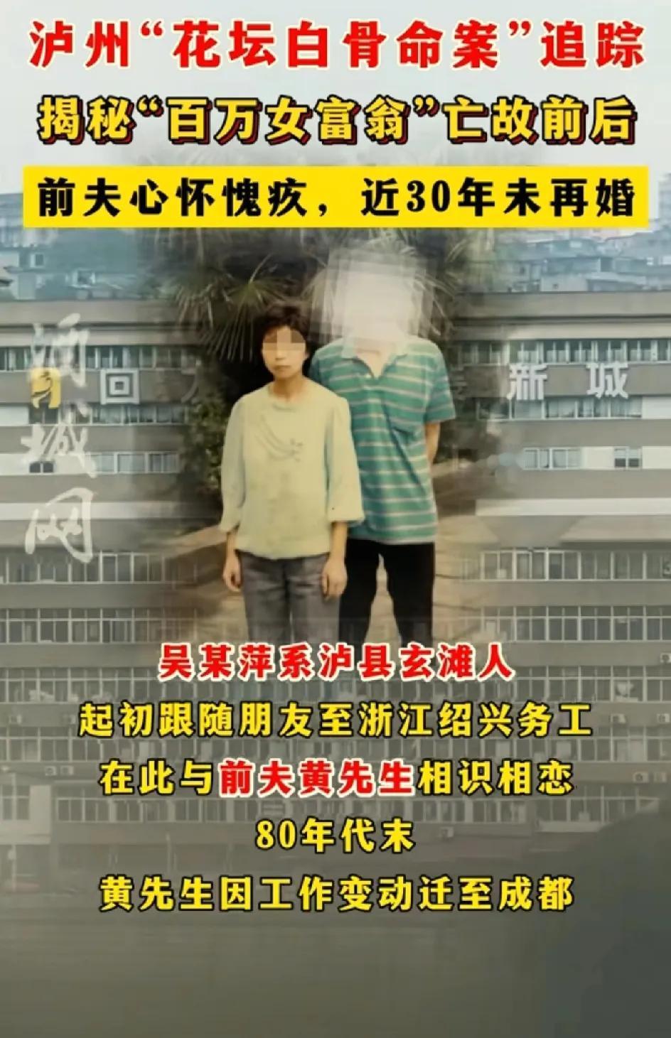 泸州花坛白骨案泸州花坛白骨案 印证了一件事:不要介入他人的因果,不要拿金钱去试探人性。被害人吴某萍的儿子黄平说:我的妈妈对朋友很好。妈妈当时做羊毛衫批发生意,抽屉里的钱很多。 1997年泸州职工的平均工资才四五百块,她一次性拿出4万借给同行,也就是犯罪嫌疑人。如果她当时不借这个钱,也就不会丢了命吧?当时的4万块钱算是巨款了。可以买一套房子。除了自己最亲近的人,不要轻易借钱给别人,到最后能借出仇来。吴某萍遇害的时候才35岁,她的身躯被蜷缩在小小的花坛里面28年。她原本有非常美好富足的未来,却被别人恩将仇报。据说他那个时候已经有百万的身价了。犯罪嫌疑人杀死她之后,抢走她的身上的金银首饰,把她封在一个小小的花坛里面,用瓷砖封死,原本她不该有这样的命运。