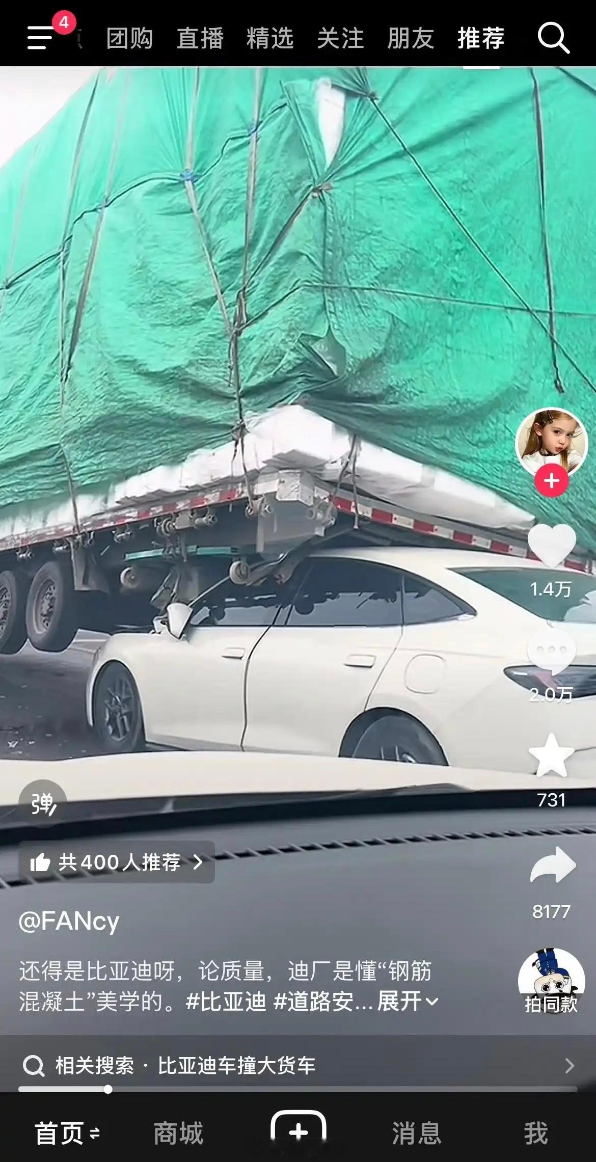byd硬抗满载泡沫车,光板车自重就已经不低了,好在车身没多大损伤,难道aeb没触发么比亚迪