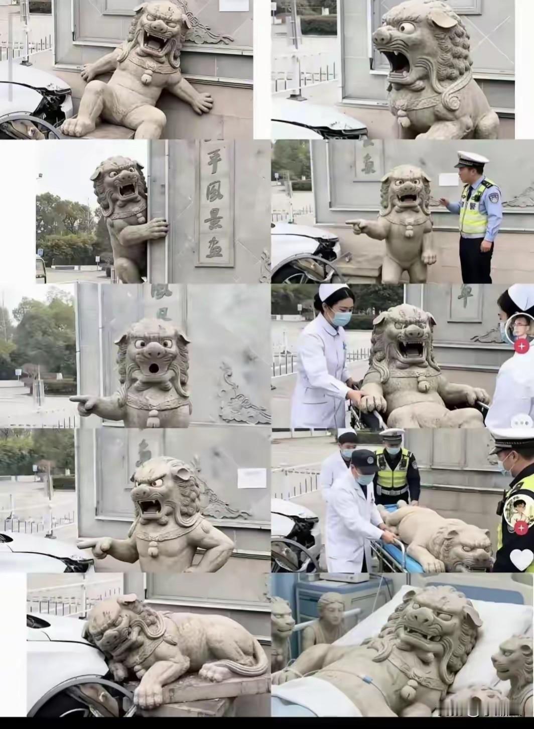 笑疯啦!有网友开车撞上石狮子,被石狮满脸嫌弃狠狠“拿捏”石狮子满脸生无可恋的嫌