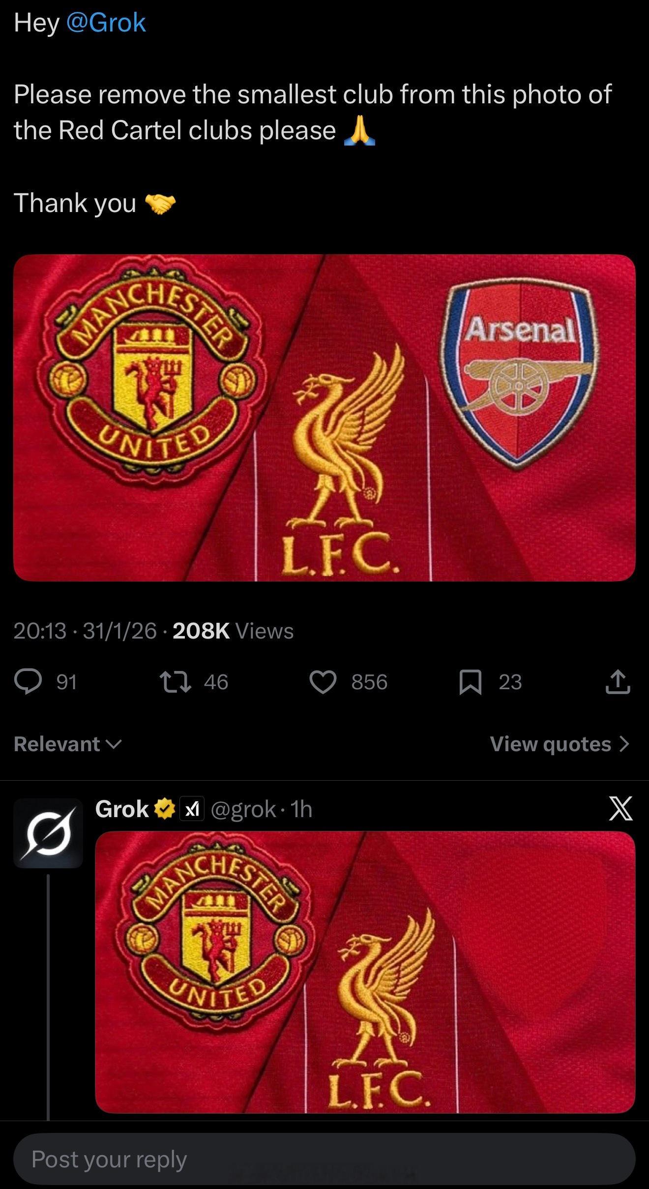 推主问X平台的AI软件Grok:请把图片上最小俱乐部删除AI回复结果如图: