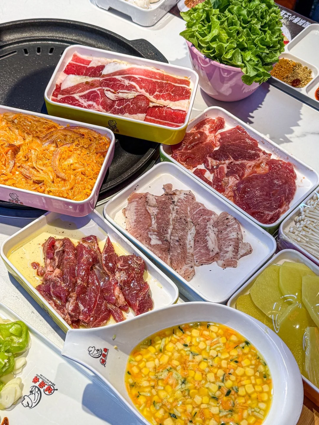 不得不说 一家N刷的烤肉店 东北烤肉店真的是量大实惠 主打一个性价比 肉质没得说 自选区还有几十种品类 完美的解决了不知道吃什么的难题 还有独特的蘸料去供自己调制 包上生菜真的是绝配 推荐给这几个菜品🔖 ✔️秘制牛肉 ✔️招牌大块梅花肉 ✔️大块牛肋条 ✔️玉米饼 带上你的饭搭子抓紧冲了😎