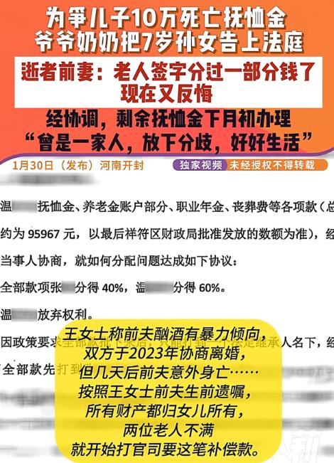 “在金钱面前,亲情不值一提!”河南郑州,女子和丈夫裸婚,婚后育有一女,8年后,女子和丈夫离婚。谁知,离婚5天后,前夫突然去世。临死前留下遗嘱,女儿满18岁时,房子过户到女儿名下!前夫单位给了10万抚恤金,先打过来6万。就在这时前公婆蹦出来了,说这10万元也有他们的一份,并将7岁孙女告上法庭。经法院庭前调解,孩子分60%,前婆婆第分40%,公公放弃他那份,并签字画押,谁知,后4万抚恤金打过来以后。公公变卦了,还是坚持要分他应得那份,女子气愤不已,找来媒体调解! 时间拉回2015年,彼时的王女士还是个满心满眼都是爱情的姑娘,经同事介绍认识了前夫后,两人迅速坠入爱河。 明知对方经济条件不好,王女士却丝毫不在意,为了不让丈夫夹在自己和公婆之间为难,她主动提出裸婚。 这份决绝,让她和自己的父母闹得很僵,却没能换来婆家的半分体谅,就在结婚的前一晚,王女士的婆婆突然找她单独谈话,语气强硬地告知她一个惊天秘密。 自己的儿子并非亲生,同时明确表示,自己一分钱都不会补贴给他们小家庭,但王女士作为儿媳,该尽的孝道一点都不能少。 婚后几年,王女士一门心思经营家庭,不久后,女儿的出生让这个小家庭多了几分暖意,也让王女士觉得,所有的委屈和付出都值得。 可这份暖意,很快就被婆婆的刻意刁难打破,女儿满月时,王女士和丈夫特意在酒店订了7桌酒席,想邀请亲朋好友一起来热闹热闹,给孩子庆生,也让双方亲戚互相熟悉。 可没想到,酒席开席那天,婆家那边的亲戚一个都没来,最终只来了丈夫的几位同事,空荡荡的宴会厅里,只剩下王女士抱着襁褓中的女儿,满心尴尬和委屈。 后来王女士才得知,原来是婆婆暗中作祟,挨家挨户给亲戚打电话,唆使他们不要来参加满月宴,目的就是故意给她和丈夫难堪。 积压已久的怒火瞬间爆发,王女士和丈夫爆发了婚后最激烈的一次争吵,她发泄了自己所有的不满,可那些气头上的话,也深深伤害了本就敏感的丈夫。 这场争吵,成了两人婚姻的转折点,从那以后,丈夫像变了一个人,开始整日酗酒,喝醉后甚至会对王女士动手,昔日的温情荡然无存。 看着年幼的女儿,王女士一次次选择隐忍,可丈夫的暴力和酗酒越来越严重,她的身上常常青一块紫一块,心理和身体都承受着巨大的折磨。 就这样煎熬了八年,直到2023年,王女士实在忍无可忍,终于鼓起勇气提出了离婚。 念及前夫的不易,也不想让女儿受到更多伤害,王女士主动放弃了女儿的抚养费,独自带着7岁的女儿,开启了艰难的单亲生活。 本以为离婚后就能摆脱痛苦,开启新生活,可命运的打击来得猝不及防,离婚仅仅5天,王女士就接到了前夫突发意外去世的消息,这个消息像一盆冷水,浇得她浑身冰凉。 悲伤之余,王女士收到了前夫留下的遗嘱,遗嘱中明确表示,等女儿满18岁,就将自己名下的房子过户到女儿名下。 这份遗嘱,让王女士稍稍得到一丝慰藉,至少前夫的心里,还惦记着他们的女儿,可这份慰藉,很快就被沉重的经济压力取代。 就在这时,前夫的单位传来消息,鉴于其意外离世,单位发放了10万元抚恤金,作为对家属的精神抚慰和经济补偿,并且这笔钱分两笔到账,先打过来6万元。 王女士小心翼翼地将这6万元存了起来,舍不得花一分,她想着,这笔钱是前夫用生命换来的,以后就全部留给女儿当教育基金,供女儿读书、成长,也算是前夫给女儿最后的牵挂。 可她万万没有想到,这笔用来慰藉孤儿寡母的钱,竟然引来了前公婆的觊觎。 没过多久,王女士就收到了法院的传票,她的前公婆竟然将7岁的亲孙女告上了法庭,理由是这10万元抚恤金有他们的一份,要求依法分割。 看着传票上“被告”一栏里女儿稚嫩的名字,王女士气得浑身发抖。 为了尽快解决纠纷,也不想让女儿卷入这场无休止的官司中受到更大的伤害,王女士同意了法院的庭前调解。 调解现场,经过法官的耐心劝说,双方最终达成一致协议:前公公自愿放弃对这笔抚恤金的分配权利,并签字画押确认,10万元抚恤金,7岁的孙女分得60%,前婆婆分得40%。 王女士想着,多一事不如少一事,就算前婆婆分走一部分,至少女儿能拿到大部分,也能让这场纠纷尽快结束,便同意了这个调解方案。 本以为事情就此落幕,可当剩余的4万元抚恤金到账后,前公公却突然变卦了,一改之前的态度,坚决要求分走自己应得的那一部分。 不管王女士如何沟通、劝说,他都不为所动,甚至在王女士上门沟通时,对其进行打骂。 走投无路、孤立无援的王女士,实在没有办法,只能求助于媒体,希望通过媒体的力量,曝光此事,维护自己和女儿的合法权益,也让前公婆明白,做人要讲信用,不能为了钱不顾亲情和法律。 最终,经过媒体介入调解和法院的再次劝说,前婆婆终于同意按照最初的调解协议执行,这场持续多日的抚恤金纠纷,才算勉强落下帷幕。