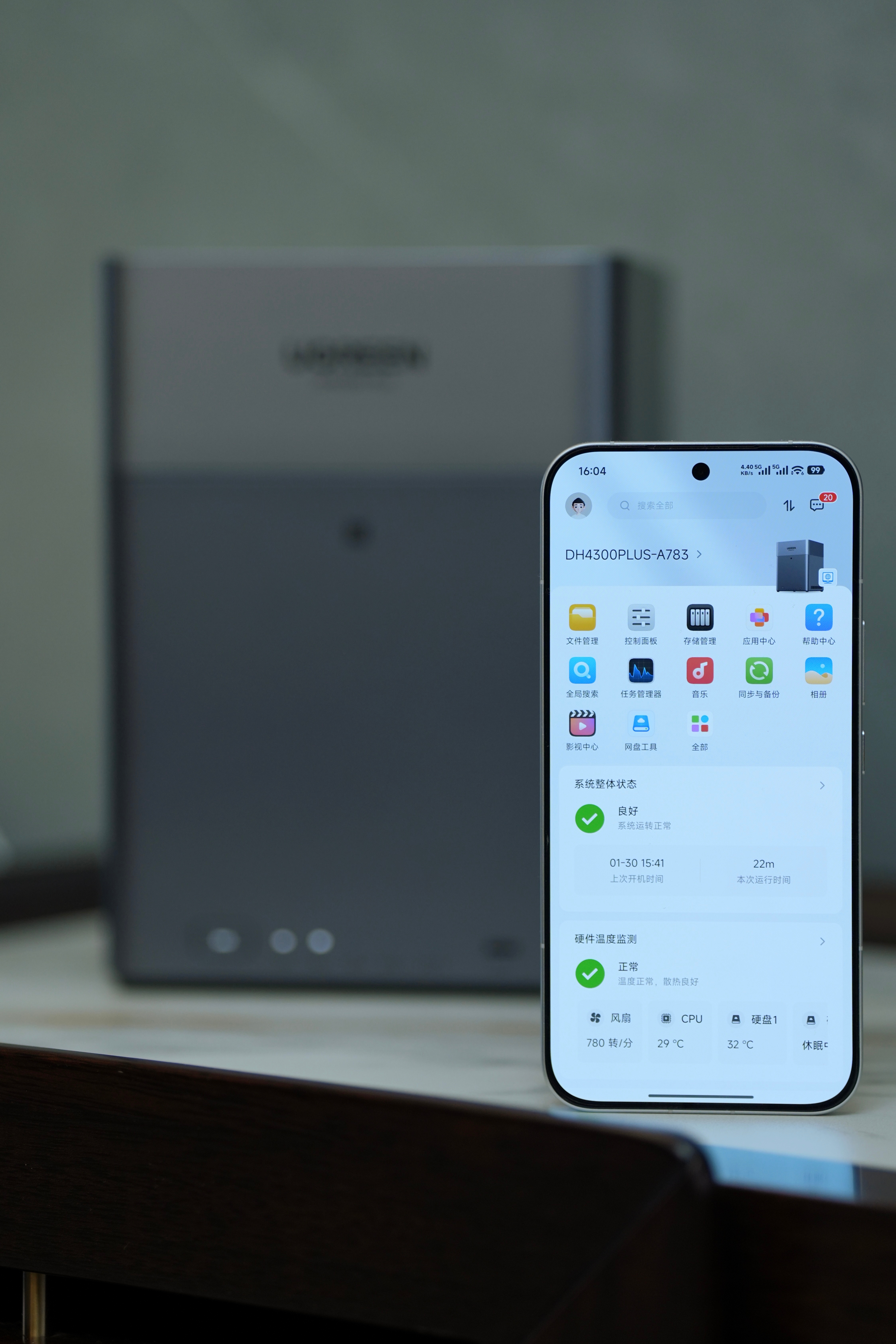 先介绍一下这款NAS 吧,4盘位设计,单盘最高30TB,总容量可高达120TB,搭配8核旗舰处理器以及2.5G高速网口,并且还有一个USB-C 3.2 Gen 1接口、2个USB 3.2 Gen 1 A口和一个HDMI 接口,兼顾海量存储和高效传输,安装起来也非常方便,一点不像传统NAS 产品那样复杂,轻松打开顶部硬盘托架,然后使用包装内附赠的配套螺丝将硬盘安装进去即可,完全不需要专业工具,然后使用手机碰一碰NFC标识就可以跳转绿联云APP,手机和NAS在同一网络的情况下可以自动识别设备并完成初始化,里面还有详细的新手指引等等,像我这样的NSA新手也可以轻松搞定。