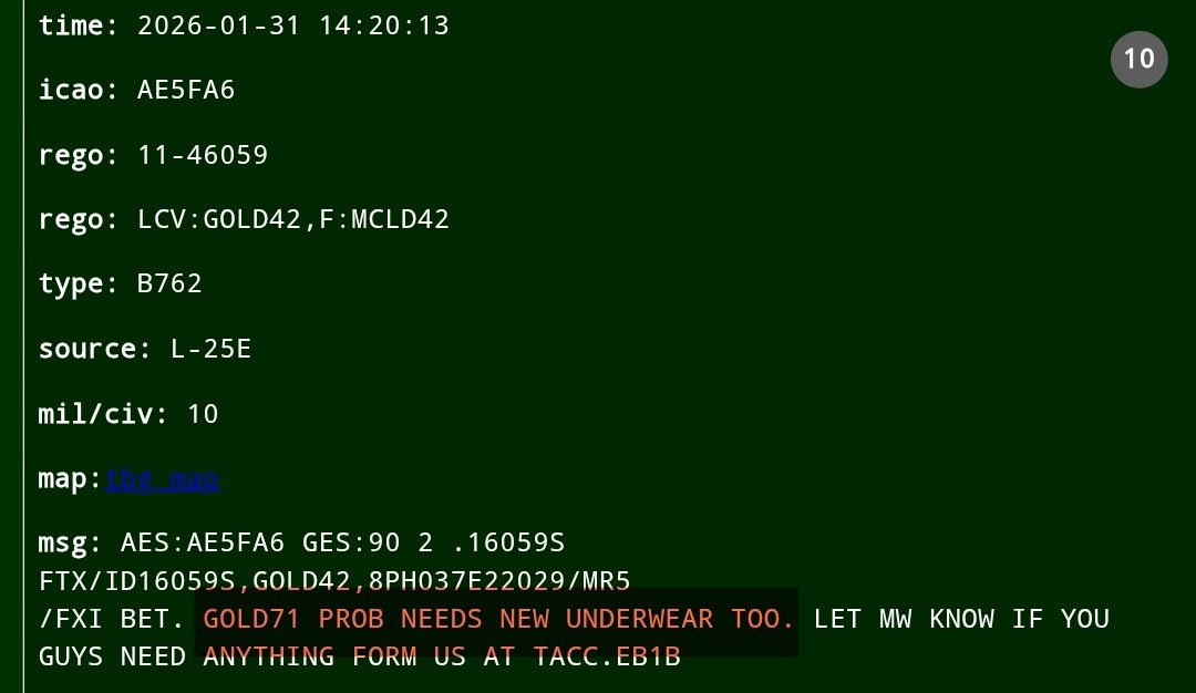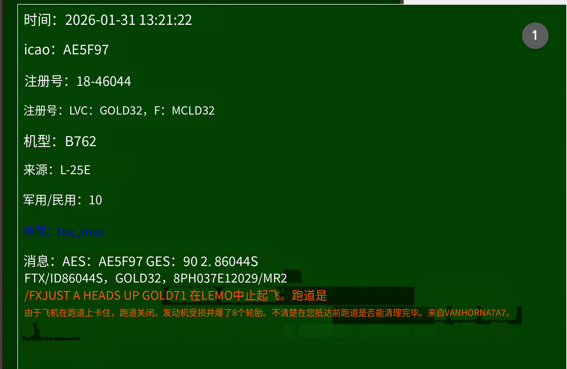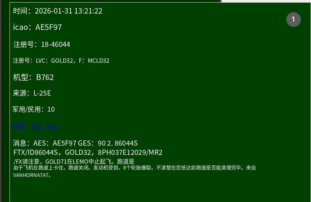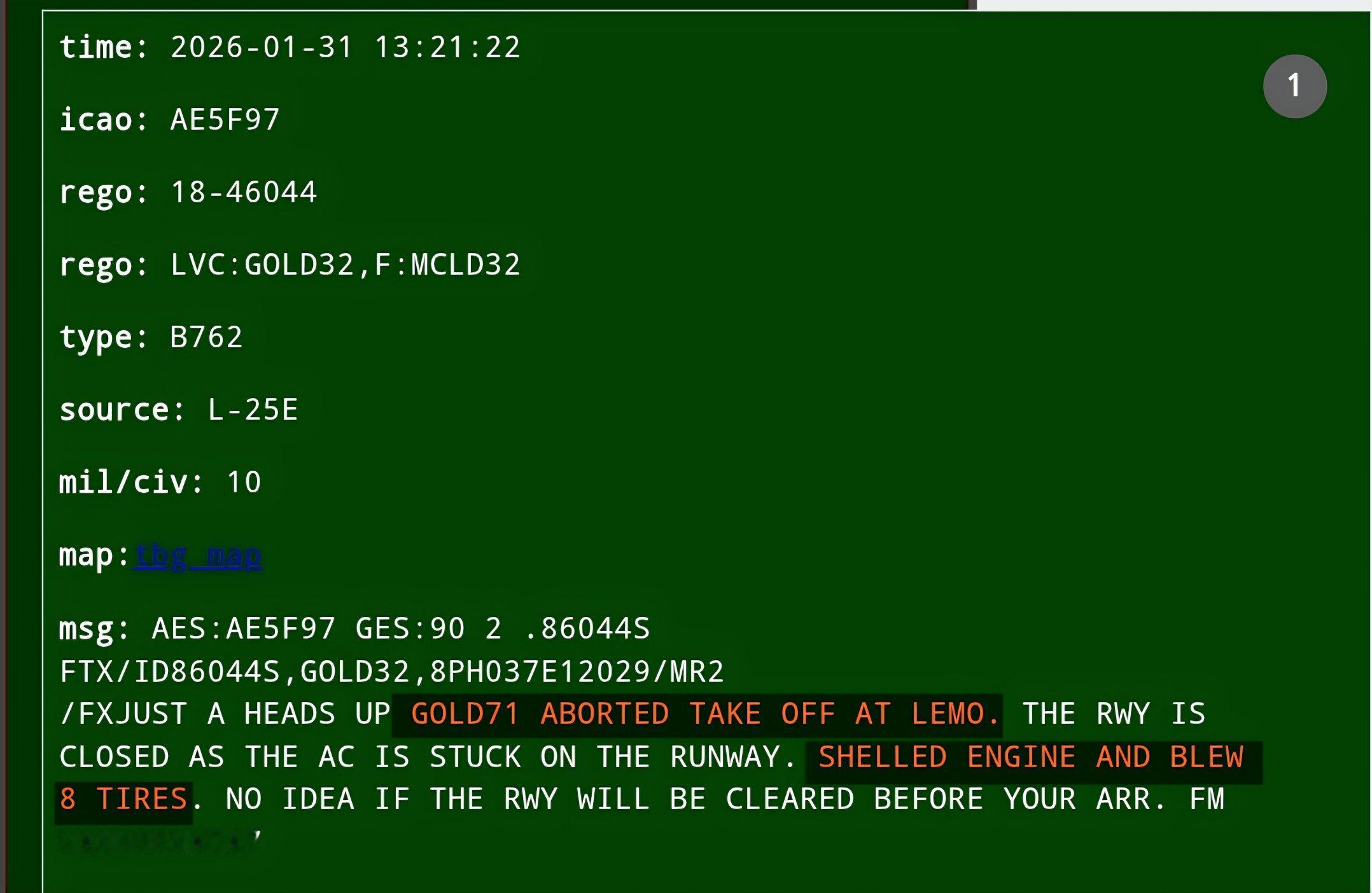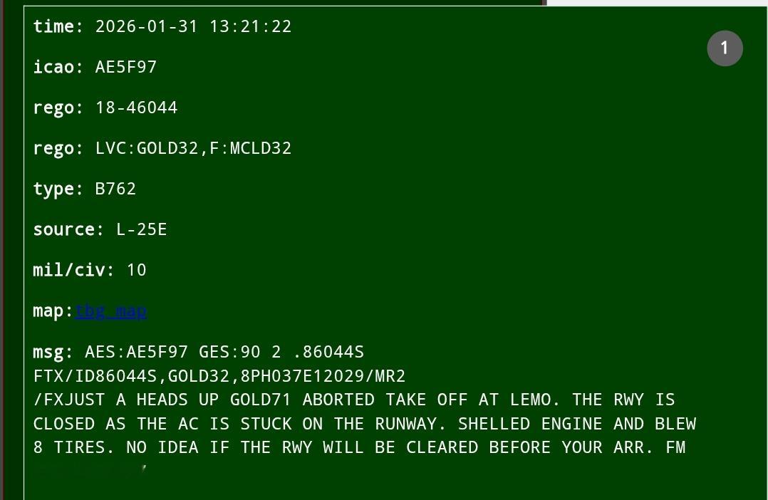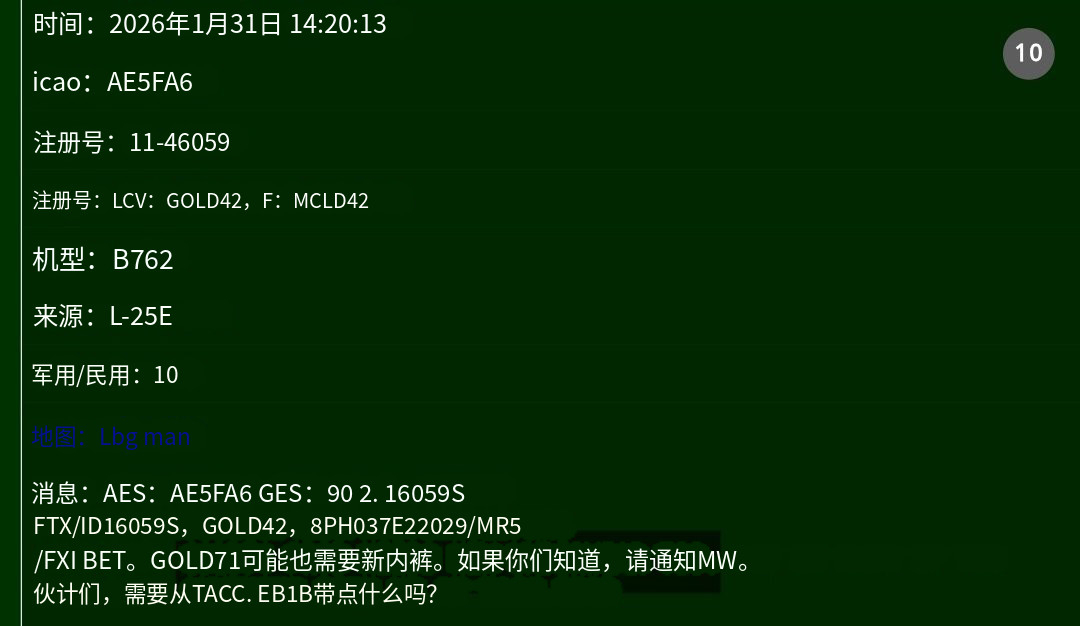 🔻航空通报显示:西班牙莫龙基地发生一起不明事件,似乎是加油机(呼号GOLD71)8 个轮胎爆胎、发动机受损,考虑到轮胎数量和呼号,可能是 KC-46A 加油机。🔻根据来自 thebaldgeek 网站的 ACARS 信息,KC-46A 注册号 11-46059 GOLD71需要更换起落架(图5-6)。🔻这意味着 F-35A 向中东的转场可能推迟。热点现场海外新鲜事伊朗阿巴斯港一栋居民楼传出爆炸声