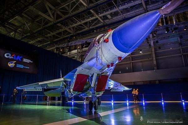 2017年1月,米格-35正式亮相。 著名米格-29轻型战斗机的最新改进型——4++代战机米格-35——在莫斯科州卢霍维茨市的联合航空制造集团旗下米格生产联合体(RAC MiG Production Complex)举行了国际发布会。 生产厂内展出了三架处于不同组装阶段的米格-35战机。 在联合航空制造集团(UAC)和米格生产联合体(RAC MiG)管理层致辞,以及一段由米高扬设计局设计师和联合航空制造集团(UAC)总设计师解说的精彩视频播放后,米格-35(蓝色702)全副武装地向公众揭开了神秘面纱。 发布会结束后,来宾们被带到机场,观看另一架米格-35(蓝色712)的起飞准备过程。