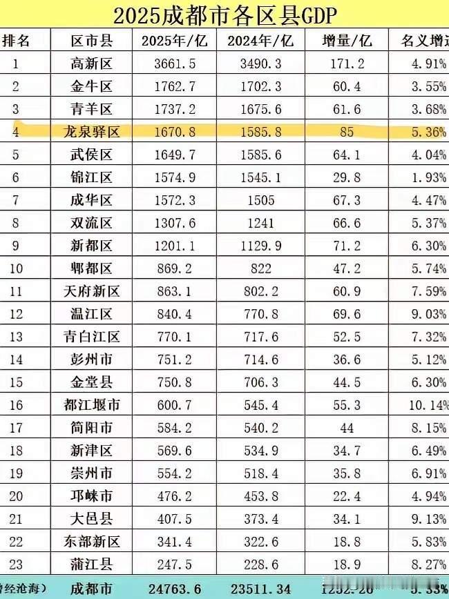 成都最落寞的县城蒲江县,25年的数据体量可能在川内183个区县中能够排到中下游区间了,相比较地理位置距离成都主城区太远,反而更靠近眉山和雅安,也是成都仅剩的3个县域之一(另外两个是金堂和大邑县),面积只有简阳的1/4,经济体量只有高新区的约1/15。