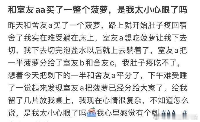 和室友aa买了一整个菠萝,是我太小心眼了吗
