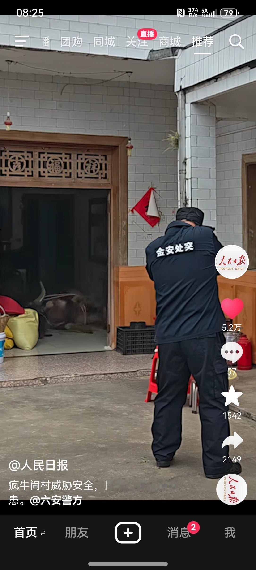 我的妈呀,疯牛竟然闯进家中,被警察叔叔击毙