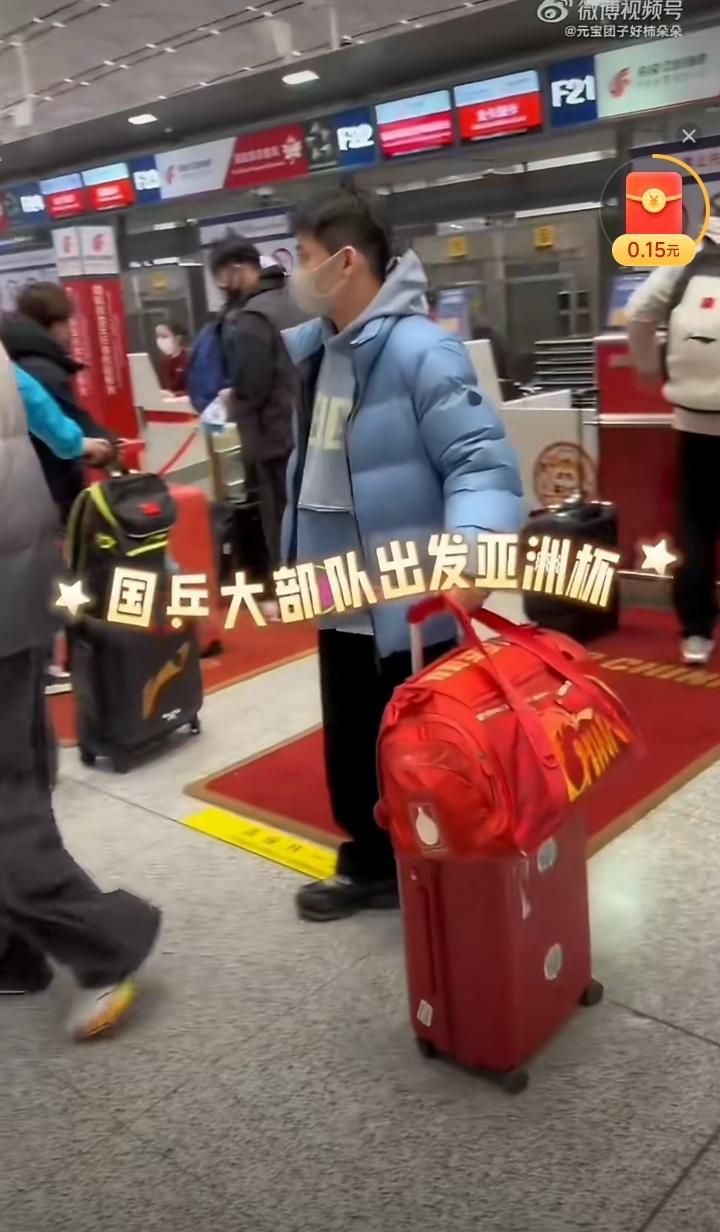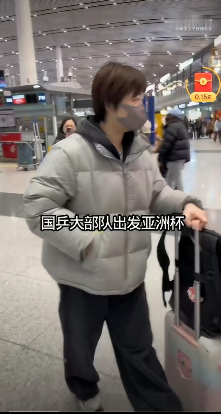 终于看到出发海口亚洲杯的林诗栋了! 依旧是红色行李箱、红色包包,羽绒服是蓝色的哦