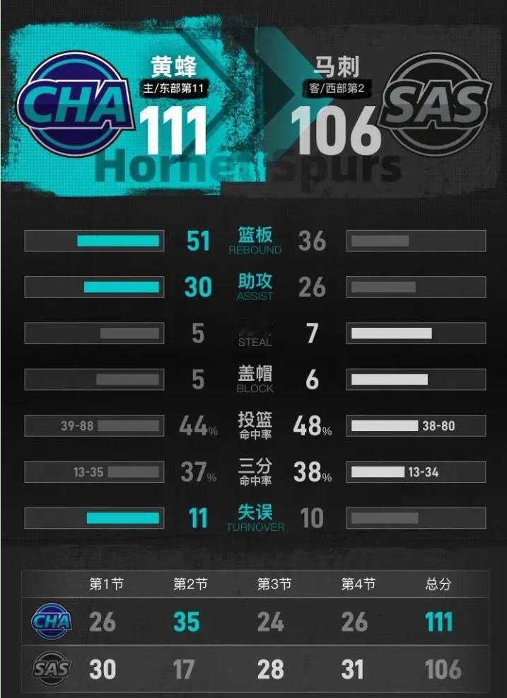 马刺这球输得,能把人气笑了!明明能赢,偏要演一出“领先不会打”的闹剧,最后时刻文班亚马居然摸不到球——这叫重建?这叫躺平! 第二节简直下饭。黄蜂落后,镜头切给教练,他一脸懵。结果呢?米勒单节轰16分,马刺防守跟逛街似的。更绝的是黄蜂替补迪亚巴特,一个二轮秀,抢10板送6助攻,把马刺高顺位秀全比下去了——这剧本谁写的? 眼看马刺第三节追到8分,该翻盘了吧?嘿,福克斯和瓦塞尔轮流打铁,传球直接送对手手里。黄蜂这边,三球手感稀烂,可米勒和塞克斯顿两个愣头青,玩命突破硬是把分差咬住。他们赢球,真不按常理出牌! 细节不会骗人:马刺第二节全队只得17分,断电四分多钟,被黄蜂一波20-4打懵。迪亚巴特正负值+18全场最高,平时场均4分,今天直接化身临时工版约基奇。最让人无语的是文班——最后关键五分钟,他就出手一次,球全在福克斯和哈珀手里乱抡。这是培养巨星?这是躲猫猫! 我挺黄蜂这帮小子:赢球不靠天赋,就靠敢拼。米勒26分里18分是对抗上篮,专挑你软肋打,够硬!反观马刺,波波维奇该骂人了:防守换人慢半拍,让黄蜂替补抢爆前场板。重建球队没纪律性,摆烂都没摆明白。 说实在的,马刺输不是黄蜂多强,是自己太菜。黄蜂六连胜也别吹上天,对手多是季后赛门槛外的队伍。但人家有一点真好:落后不瞎扔三分,专心怼内线、抢篮板。这年头,肯用“笨办法”赢球的队,反而让人看得踏实——篮球,有时候就是拼谁更想赢。 你看完这场比赛,是觉得窝火,还是有点被黄蜂那股劲打动?评论区聊聊。文班16+8米勒26+8鲍尔16+8+8 黄蜂击败马刺迎六连胜