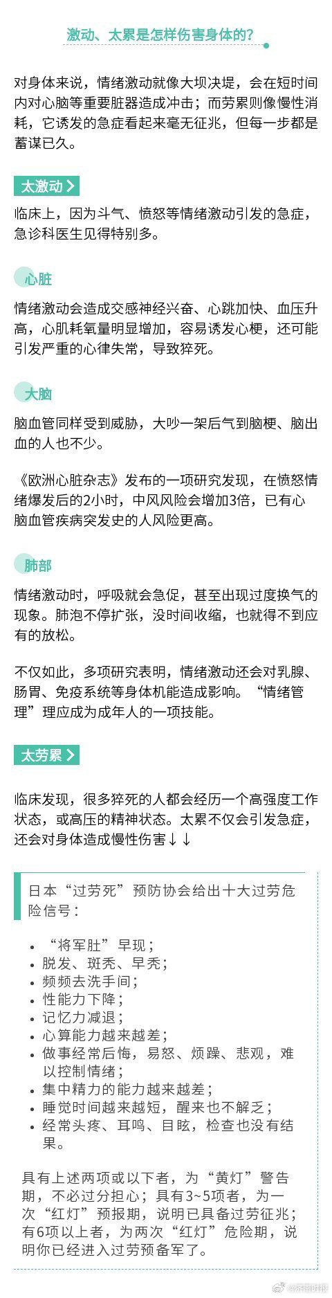 练过头很多运动猝死的人,心脏其实早有隐患,但患者往往不自知,比如先天性心肌病,平时看不出来,一剧烈运动就出事了。运动及体力劳动一定要量力而行,绝不能蛮干。拎个重物爬三层楼,对有冠心病的人来说,可能就是致命的心梗。