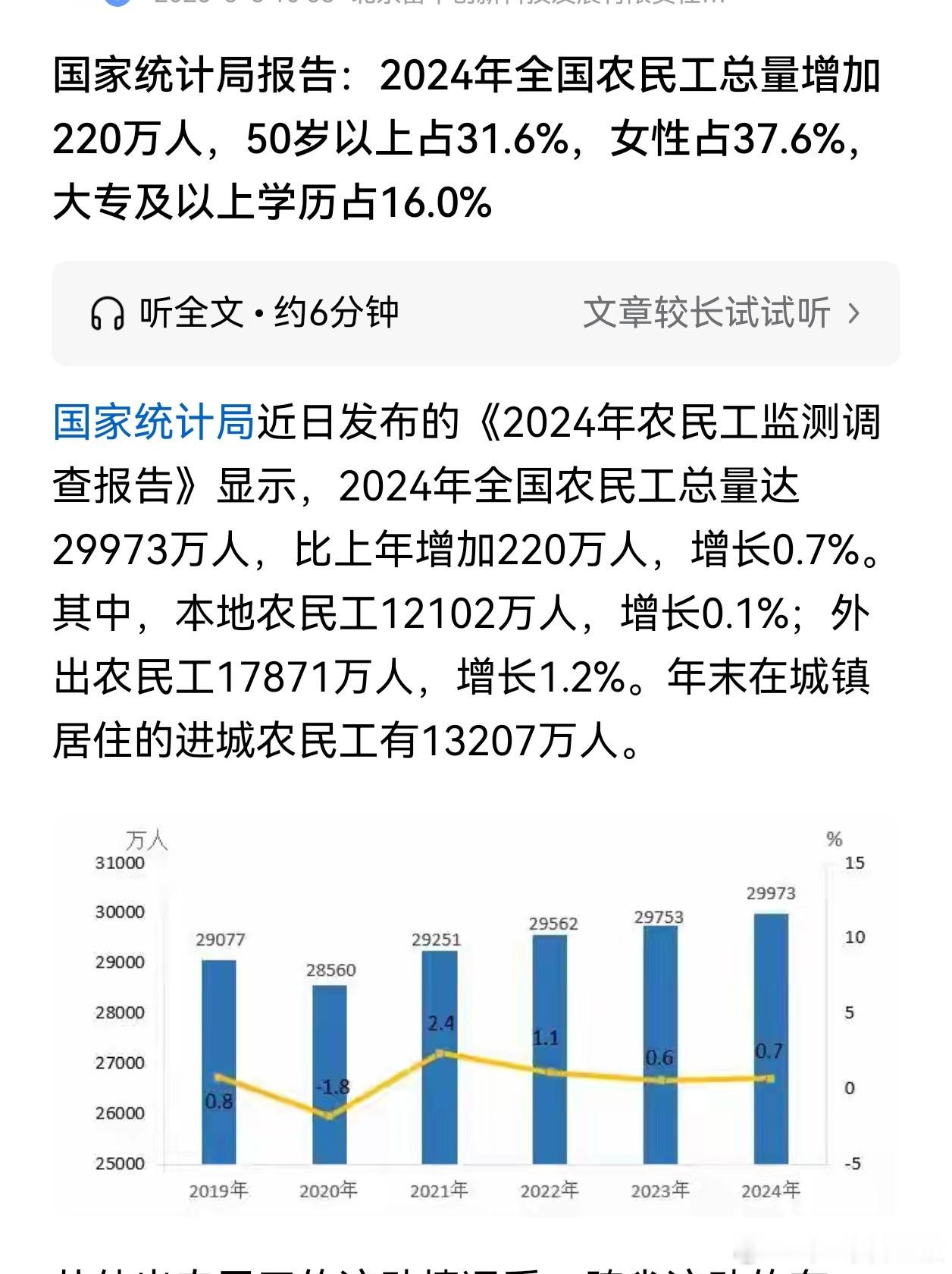 最新的2024年数据,国内有29973万农民工,总数还在增加。数量还是相当庞大。
