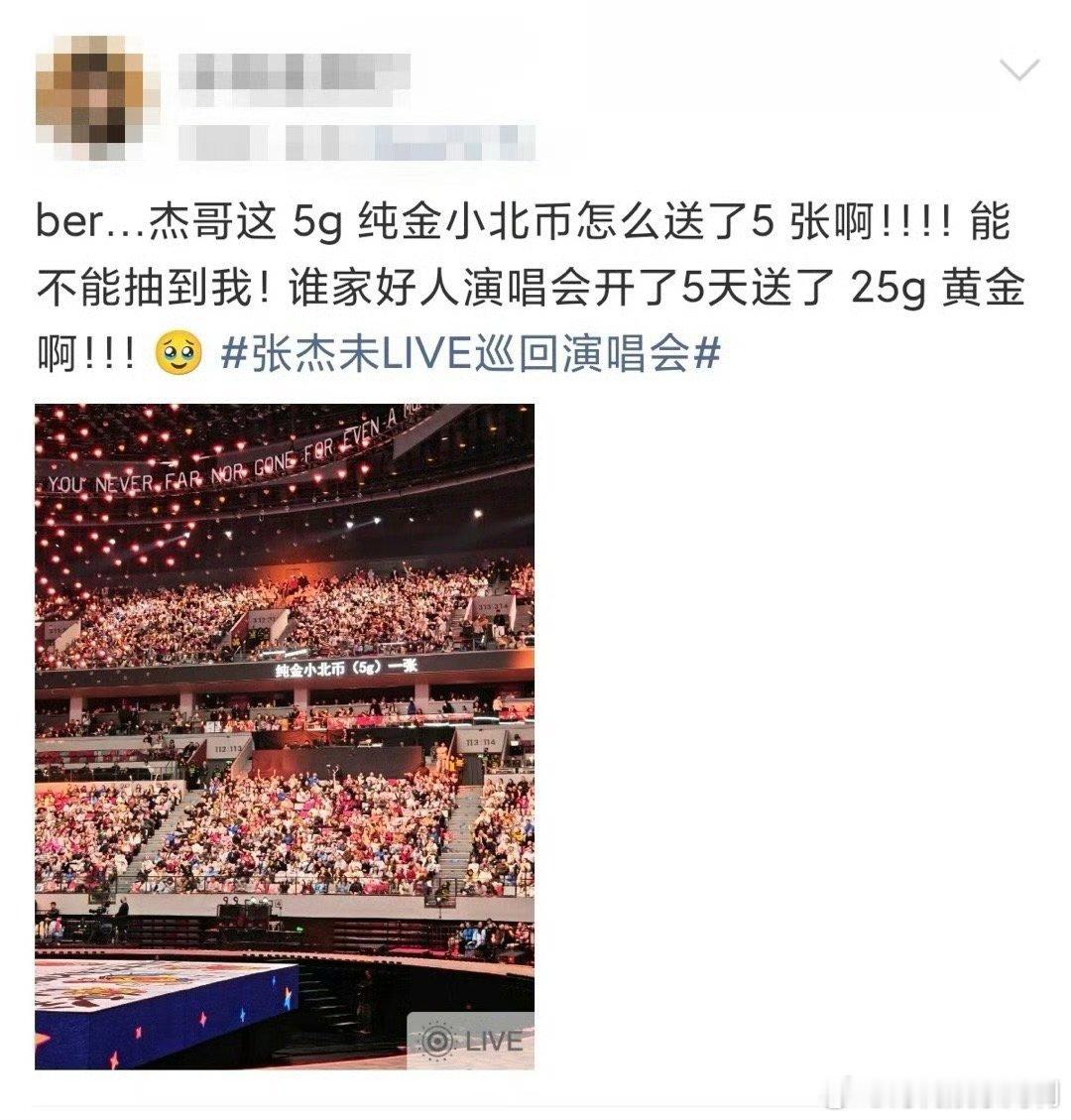 张杰五天抽了25克黄金张杰未LIVE巡回演唱会谁不羡慕成都看演唱会的朋友!张