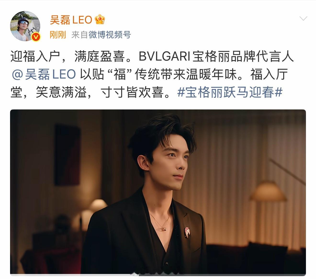 才知道吴磊已经代言宝格丽6年了,今年的跃马迎春大片拍的好贵气。