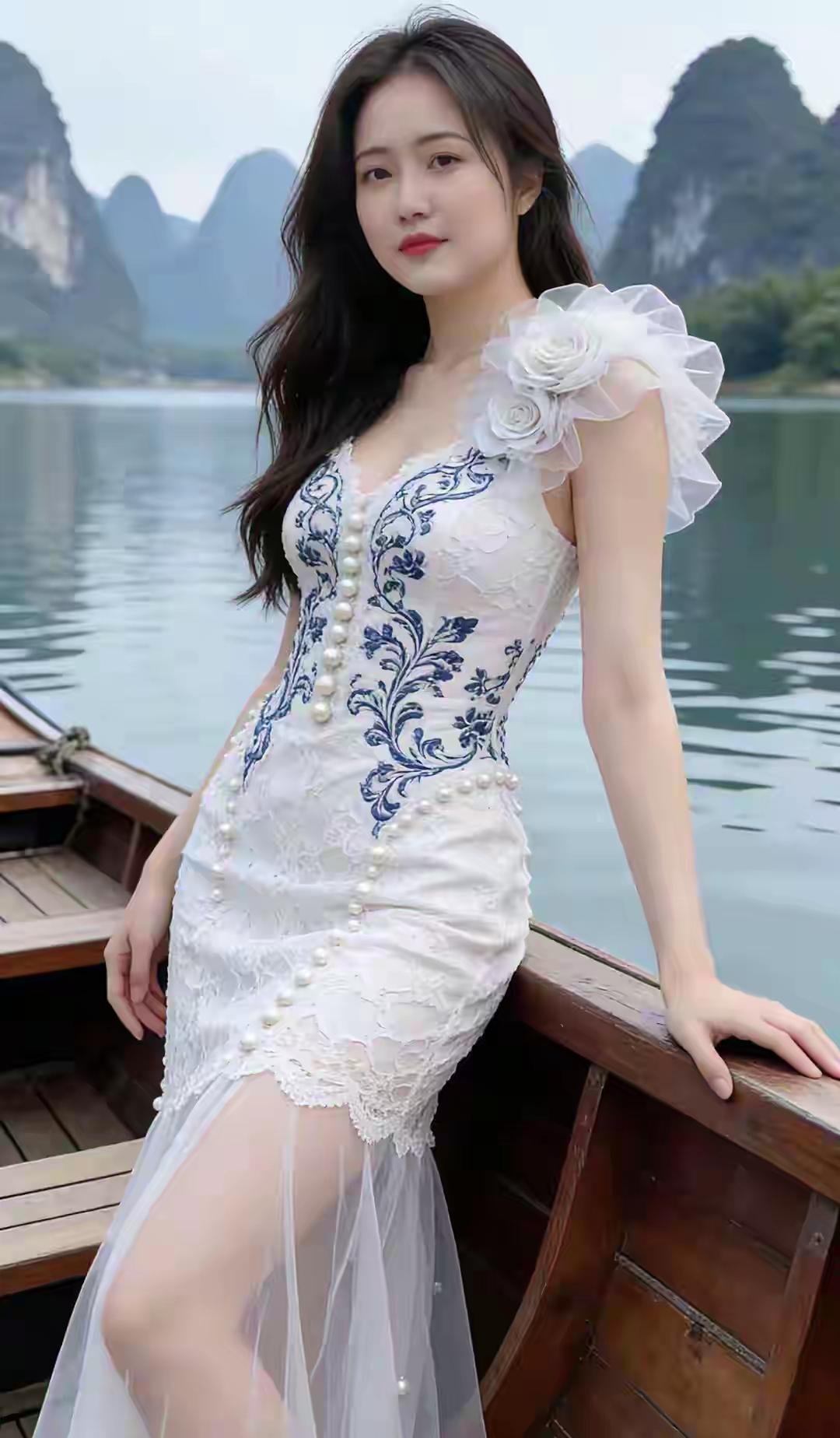 仙气飘飘的湖边少女,白裙飘飘,宛如童话中的公主。
