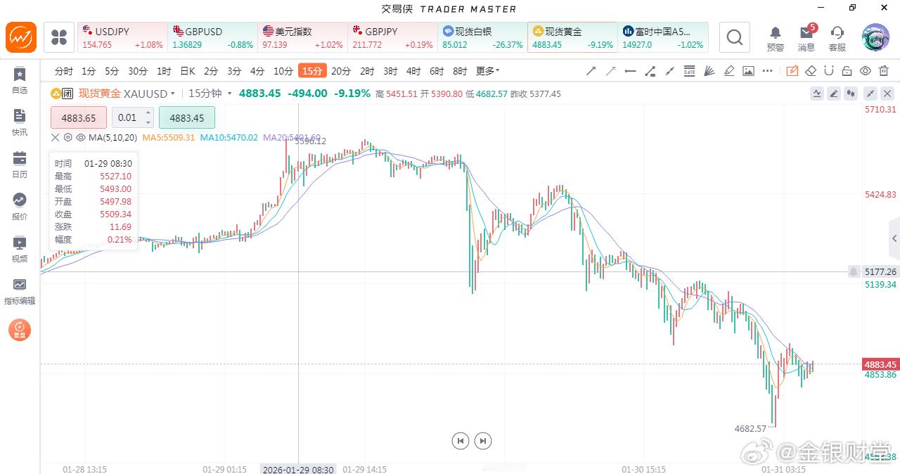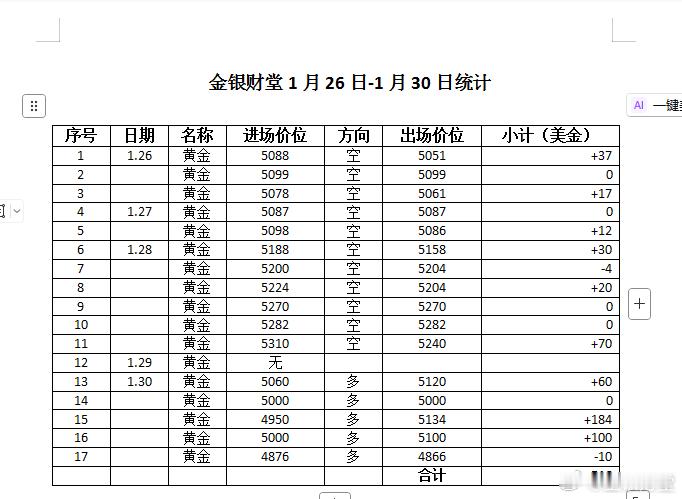 上周盈利516美金,收获满满,大家都见证!复盘上周操作:1:26-28号给出多单点位较为保守,均未成交。2:我们1.29号早晨分析提示:黄金日线量价背离,谨防大幅回撤谨慎参与,博文被举报屏蔽。1.29号日内未参与。3:1.30空单点位未成交。4:关于本周盈利为0单:10美金盈利未做提示后被保本。5:基于4的后续:29号后提示操作分日短线和波段,日短线10美金自行减仓或者止盈退场,波段等提示止盈点位,30日当日操作均按照波段操作,提前预告进场,止盈退场提示操作。下周操作:周线射击之星,周内关注支撑4680/4600/4550/4350一带,压力关注:5150/5200一带。