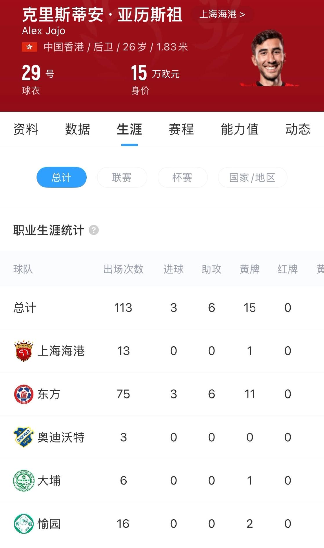 成都蓉城再签上海海港球员:亚历斯祖! 据直播吧消息,成都蓉城签下上海海港后卫亚历斯祖! 简单解读蓉城引援: 1,深圳新鹏城队签下蓉城周定洋,上海海港签下深圳队安永佳,成都蓉城签下海港亚历斯祖,三队互换港澳球员,相对来说成都蓉城队在这一项上实力被削弱! 2,亚历斯祖是中国香港后卫,26岁身高1.83米,身价15万欧,场上位置为后卫,上赛季中期加盟上海海港队,出场13次,整体水平一般! 3,成都蓉城队本赛季引援方向发生了转变,以中超内循环捡漏为主——引进了海港队两名球员:茹萨和亚历斯祖,引进了海牛队席尔瓦。 此类引援不会出现水货的情况,但因引进球员都是中超老熟人,注定上限不会太高!成都蓉城 上海海港