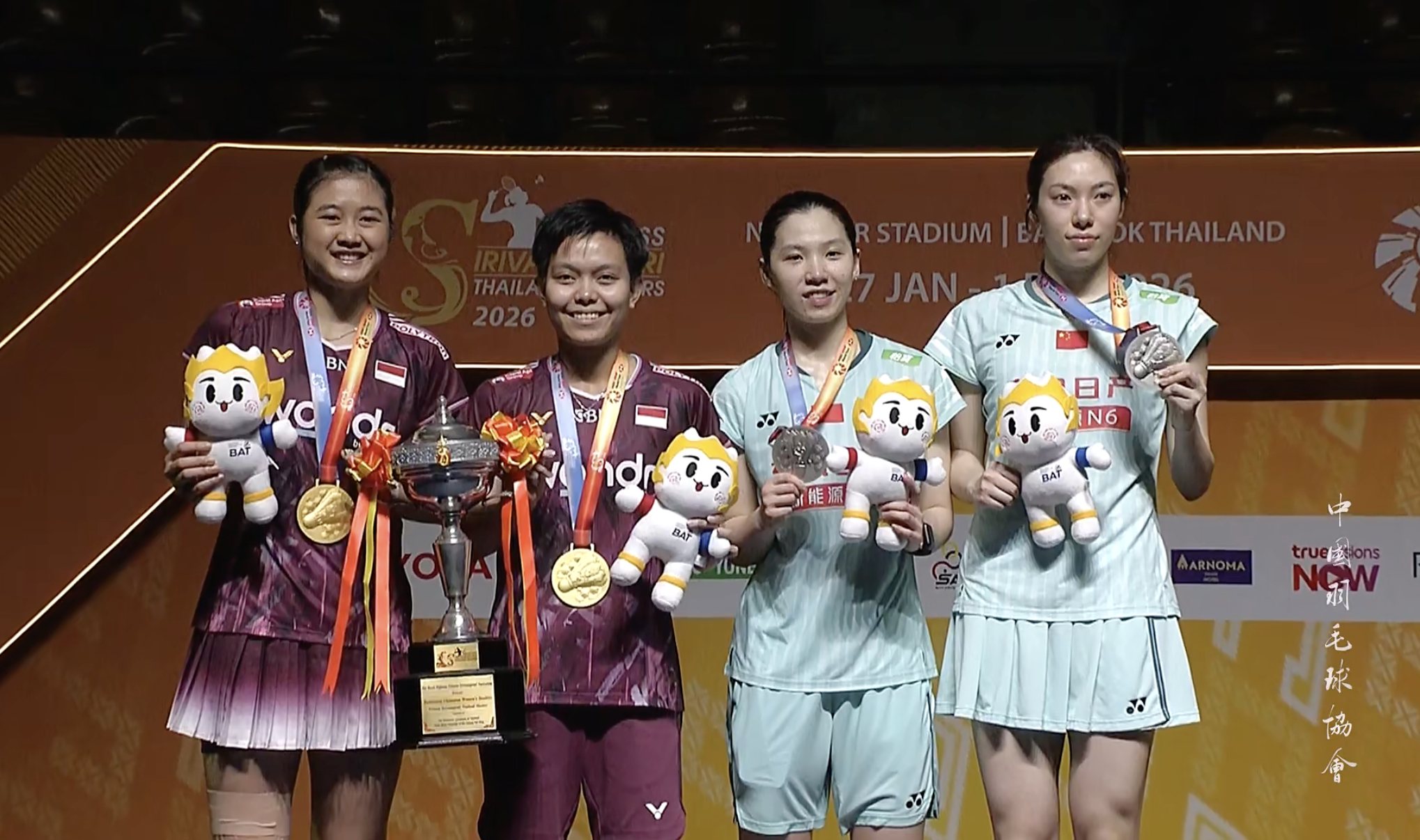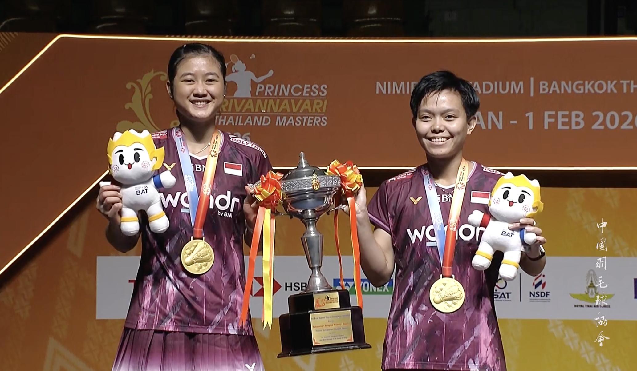 🏆女双冠军:拉马丹蒂/阿玛莉亚🇮🇩🥈女双亚军:鲍骊婧/李怡婧🇨🇳恭喜四位!🎉🎉🎉2026年泰国羽毛球大师赛