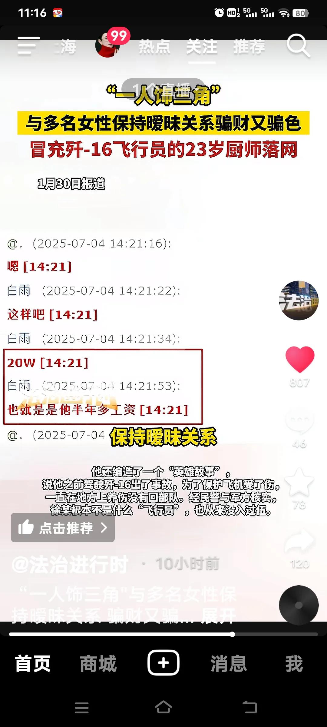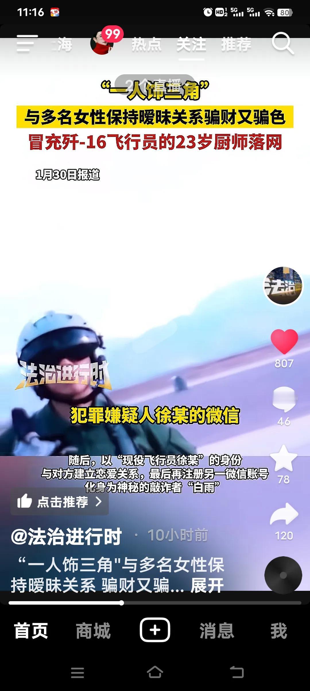 现在的骗子真是花样百出。山东烟台23岁厨师徐某,“一人饰三角”冒充飞行员诈骗多名女性,堪称骗子界“海王”。 他与多名女性保持暧昧关系,先冒充介绍人找目标,以“我弟弟是飞行员很喜欢你”要到联系方式,再以“现役飞行员徐某”谈恋爱,最后化身“白雨”敲诈。 就拿陈女士来说,相恋不久就被“白雨”的假象迷惑。涉事人徐某还精心编造“军人身份”,发“军官证”影像,朋友圈还有飞行照片。建立恋爱关系,获取对方的微信号。多行不义必自毙,这样的骗子落网真是大快人心! 介绍人诈骗 假冒飞行员 山东菏泽骗子 打假人骗局 虚假男友诈骗