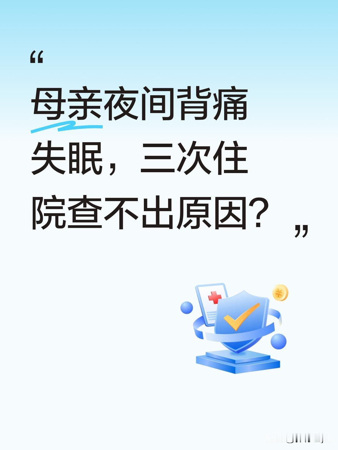母亲夜间背痛失眠,三次住院查不出原因? 有网友分享:母亲今年第三次住院,高烧头晕伴后背剧痛,整晚无法入睡。从广东赶回老家带母亲检查,验血、CT、彩超显示器官正常,仅白细胞两万多。抗病毒消炎治疗后退烧,但背痛依旧。颈椎胸椎核磁只查出轻微突出,转至糖尿病医院后白细胞更高,还出现心跳过快。目前用药一周,背痛未缓解,白细胞下降但心跳仍快。白天不痛夜间剧痛,只能坐着熬。各项检查查不出明确病因,实在没办法,有懂行的朋友能给点建议吗?