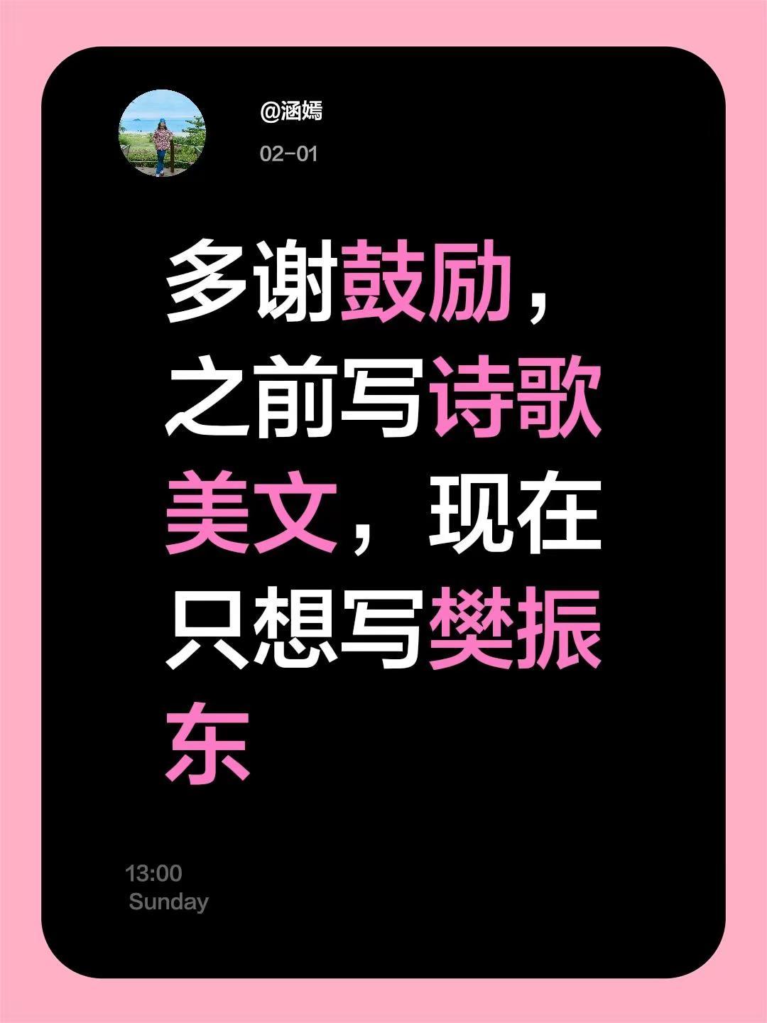 我评论了@涵嫣 的作品:多谢鼓励,之前写诗歌美文,现在只想写樊振东